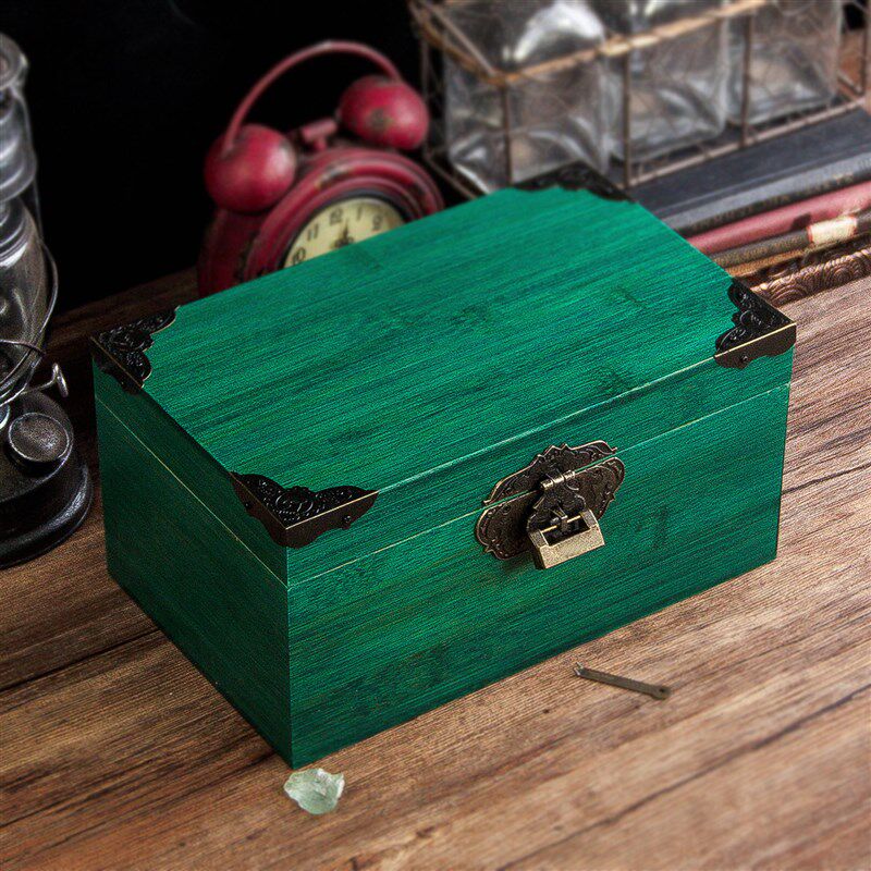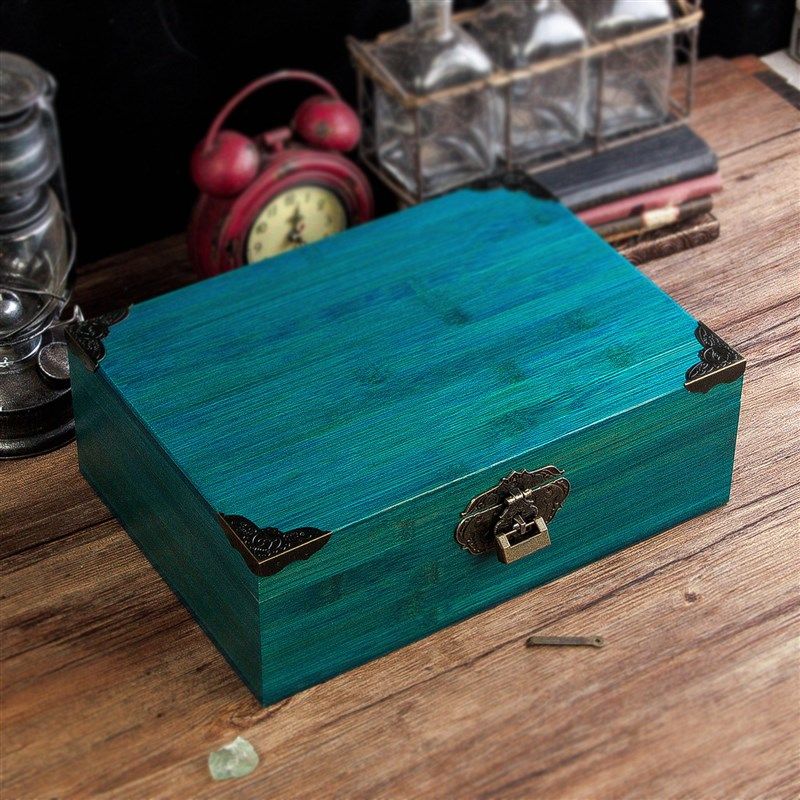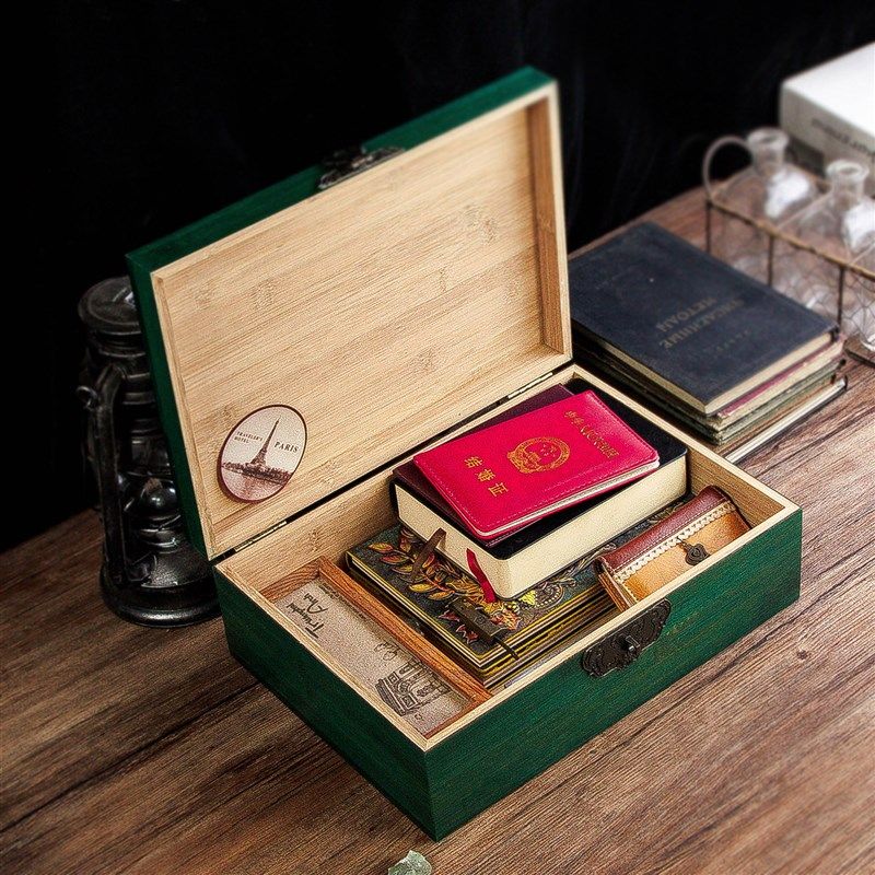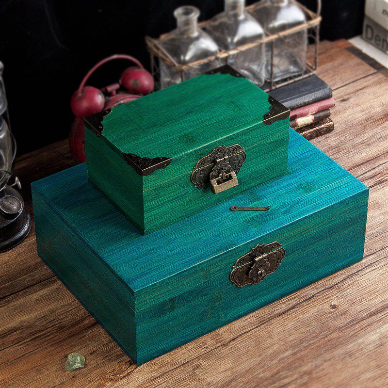 📚 竹木实木带锁长方形木箱首饰证件收纳G小木盒桌面整理木盒子竹盒