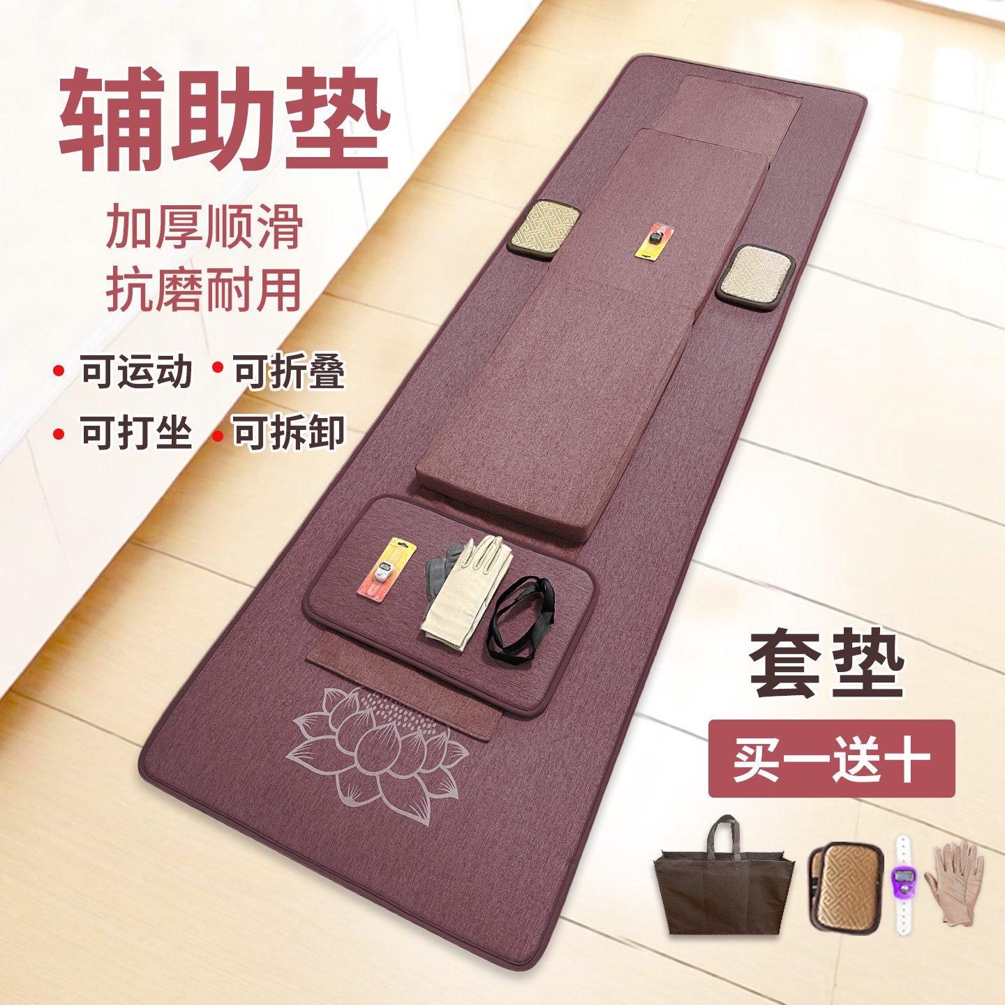 📚 四季款拜垫运动辅助垫跪垫专用垫顺滑加厚可拆洗携带