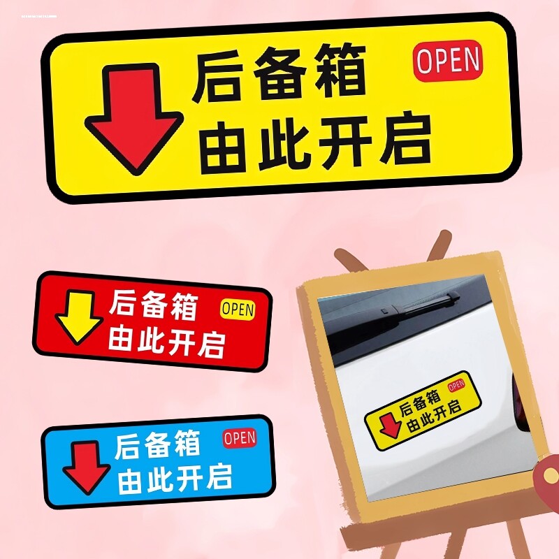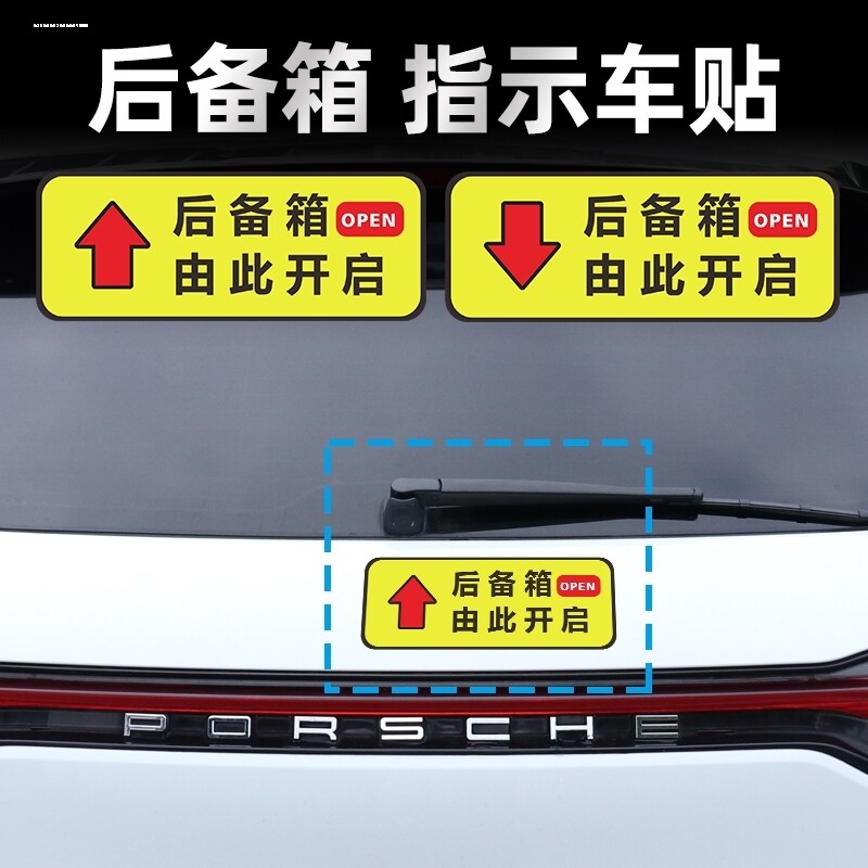 📚 通用 后备箱由此开启车贴轻按电动尾门开关提示指示按钮汽车贴纸