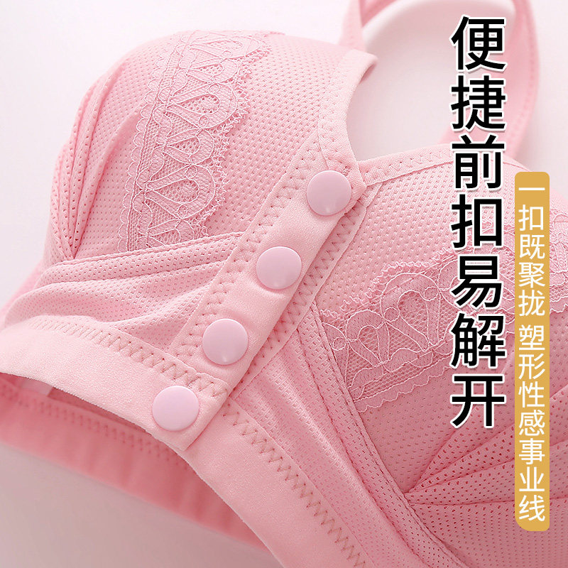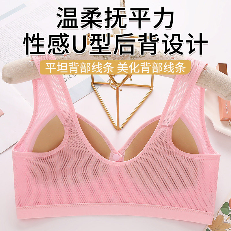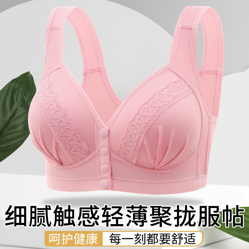 📚 舒适前扣纽扣聚拢无钢圈文胸女薄款背心式中老年妈妈内衣大码胸罩