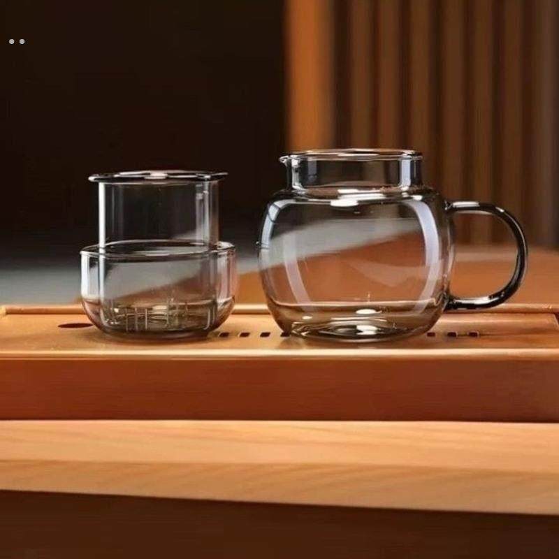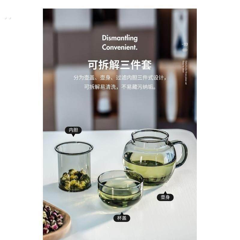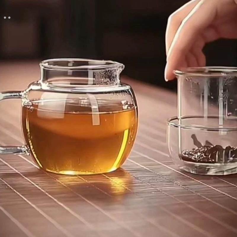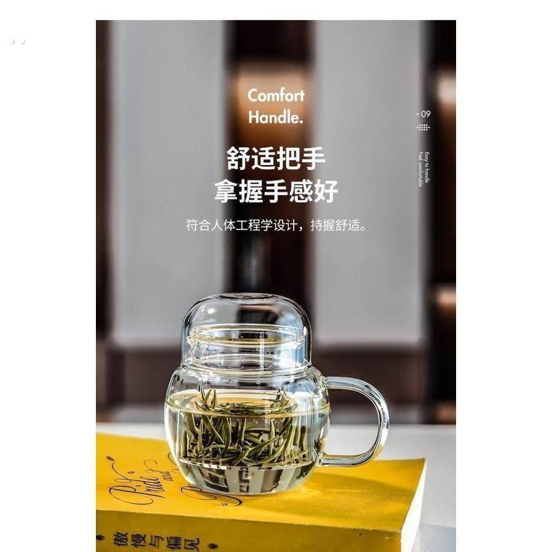 📚 耐热玻璃茶杯家用大容量过滤茶杯透明水杯带盖子茶水分离三件杯