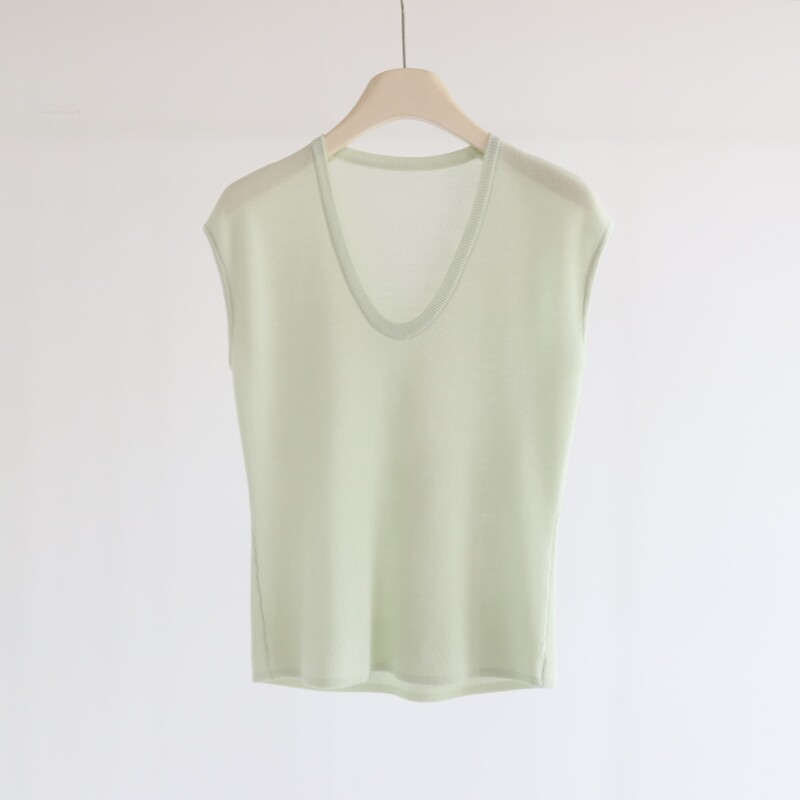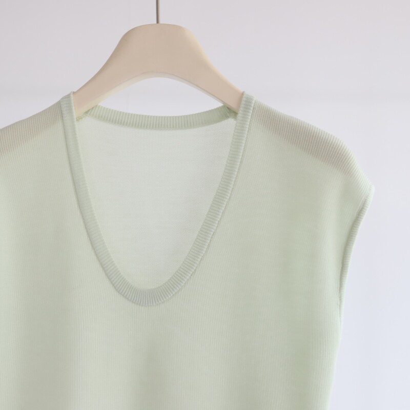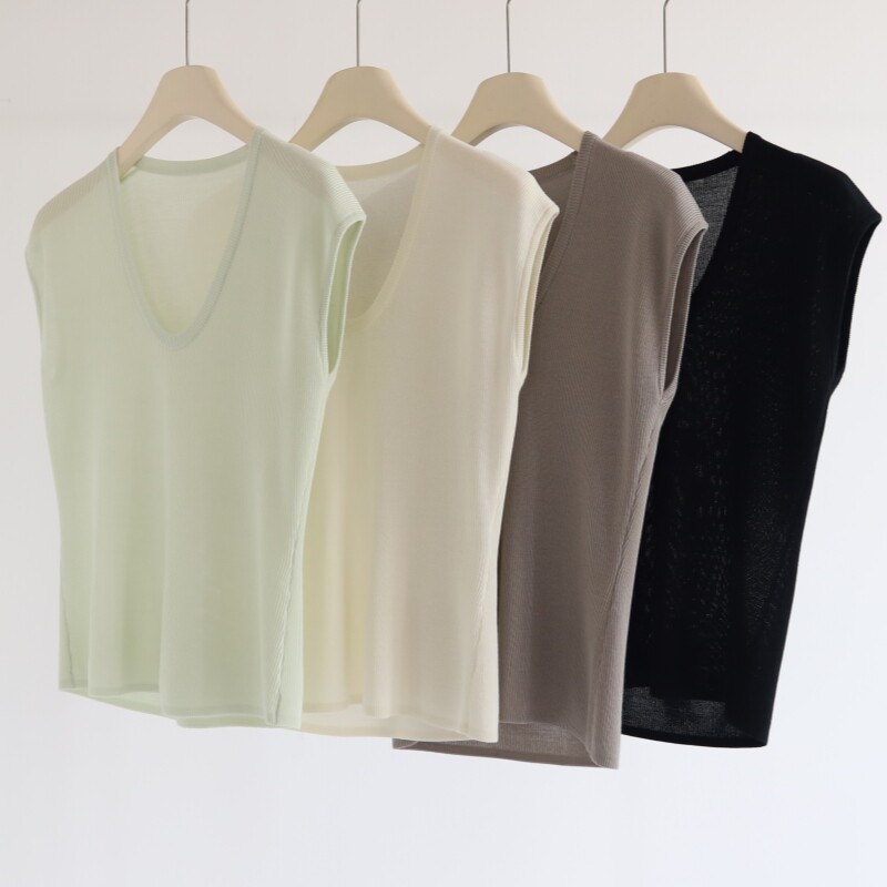 📚 白茶月光 新款莱赛尔天丝U领坎肩无袖针织背心气质通勤内搭女上衣