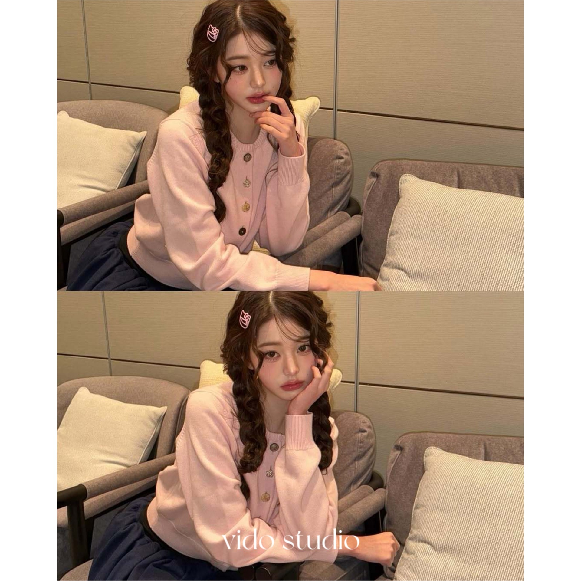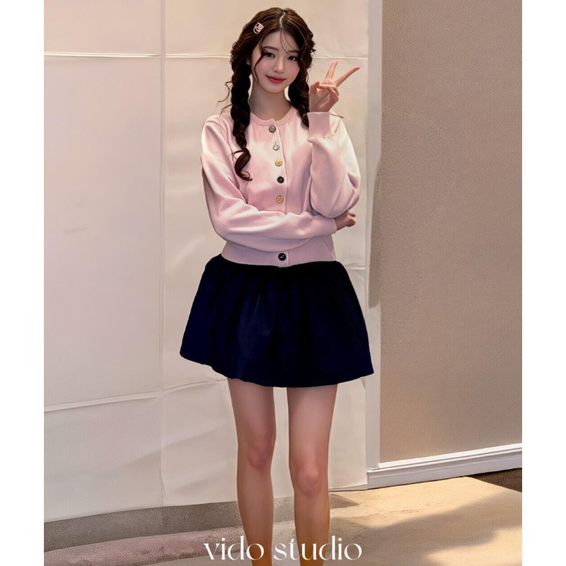 📚 张元英同款韩系慵懒风短款系带针织开衫女色韩系温柔纽扣毛衣外套