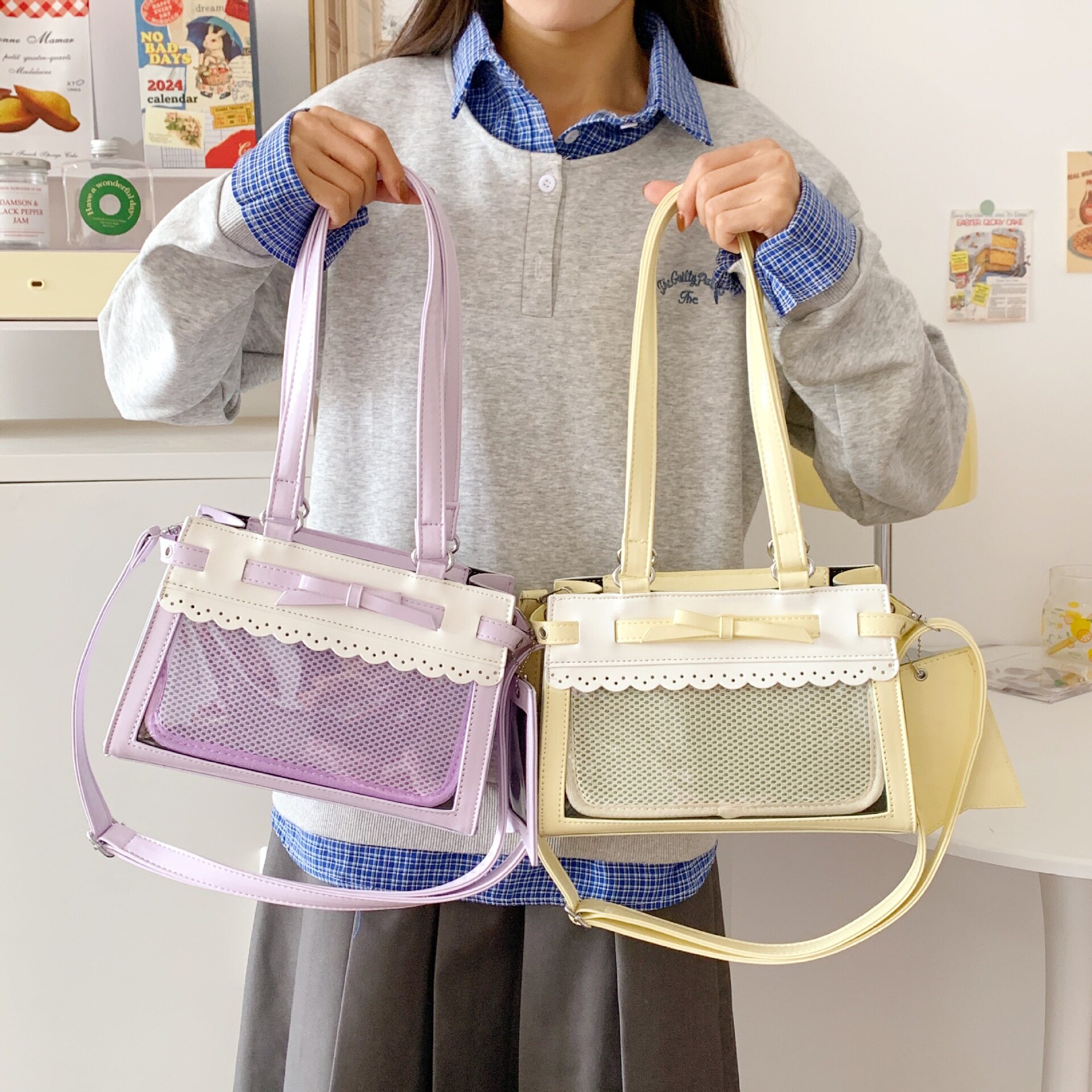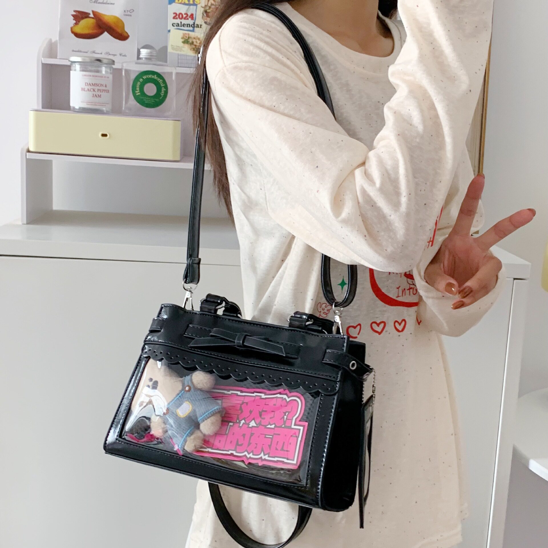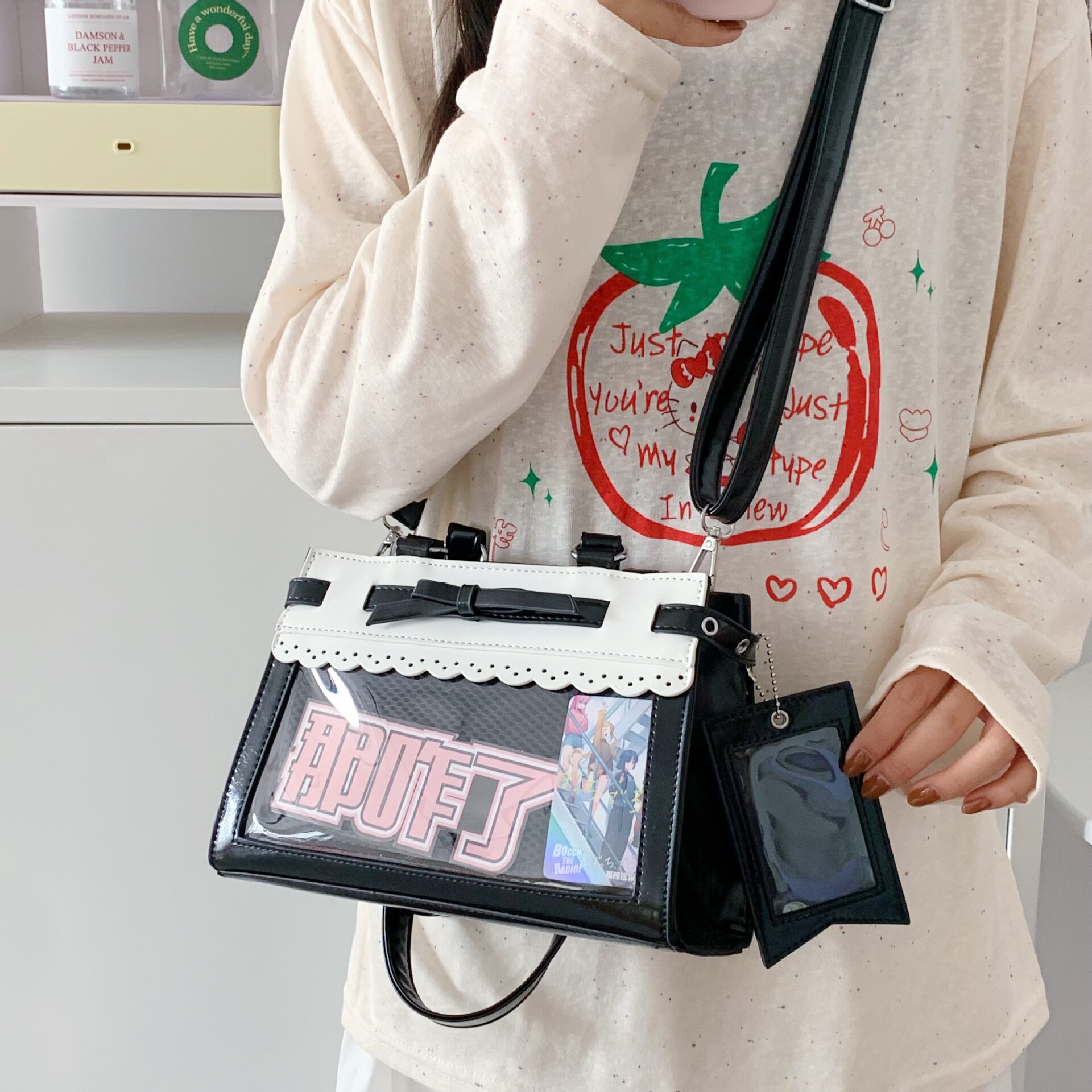📚 丝带蝴蝶结小食量痛包二次元单肩包小众吧唧包日系透明通勤斜挎包