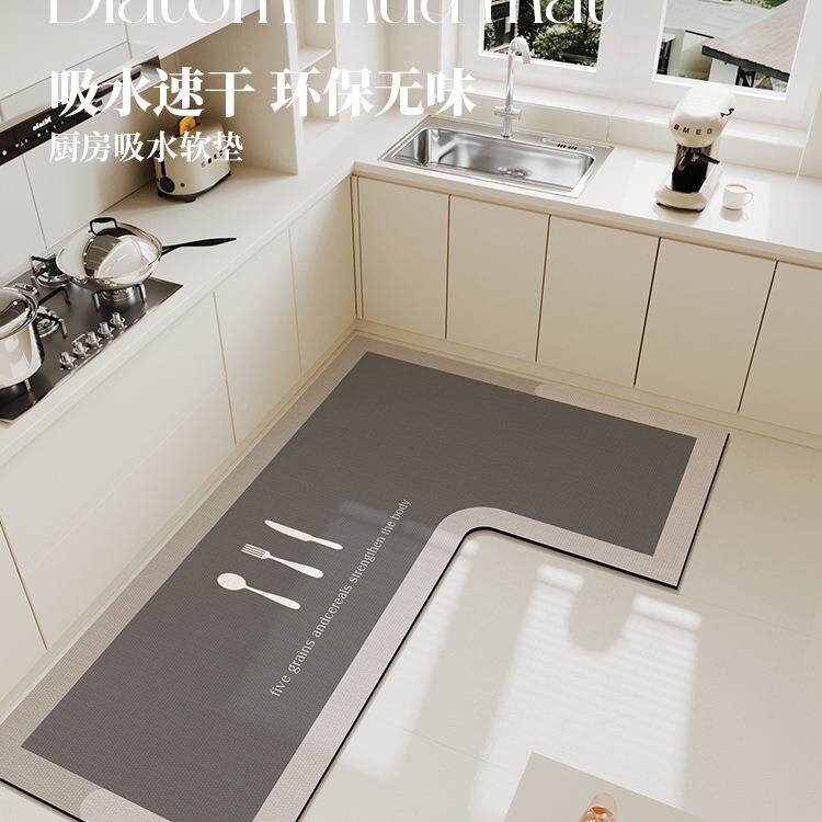 📚 7字形吸厨房地垫L型转可擦免地毯硅藻泥角水防油10009608防滑脚垫