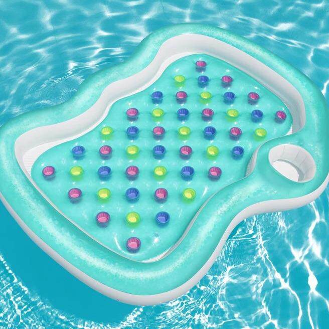 📚 Bestw成ay404加4045厚情侣浮排充气浮岛人躺浮床5双人水上漂流椅