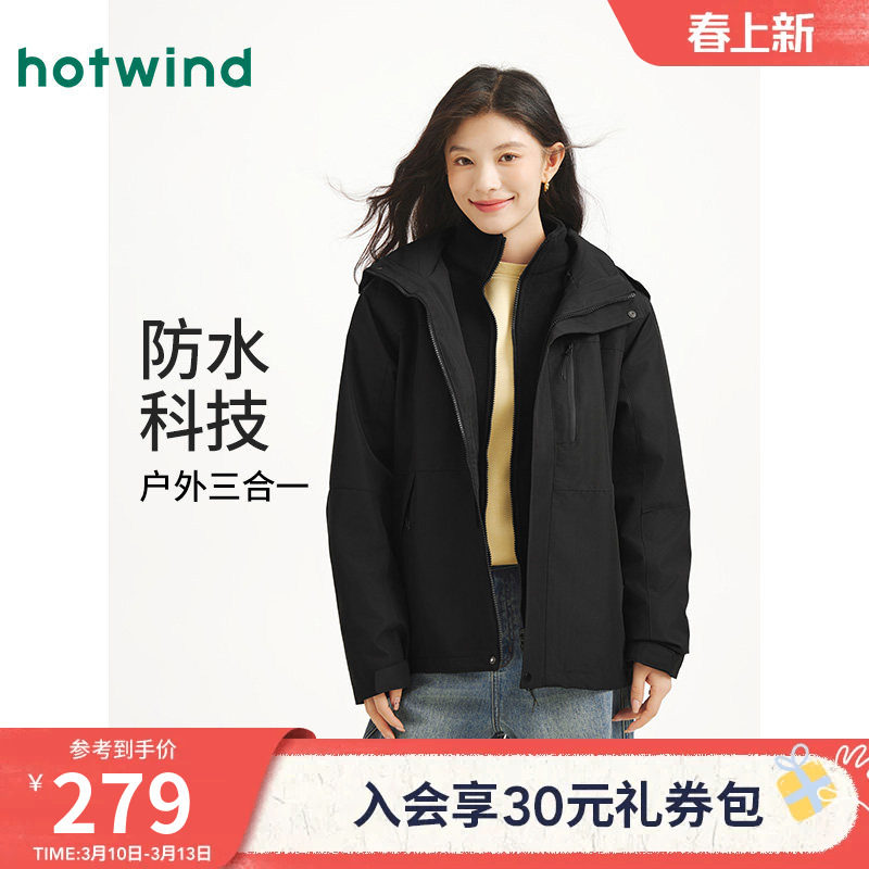 📚 热风女士户外连帽夹克外套2026年春款外套户外三合一可拆卸外套