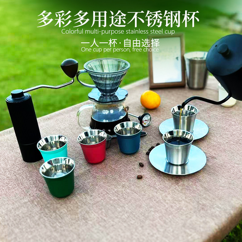 📚 意式浓缩咖啡杯家用便携不锈钢萃取杯双层隔热接液杯浓缩杯胶囊杯