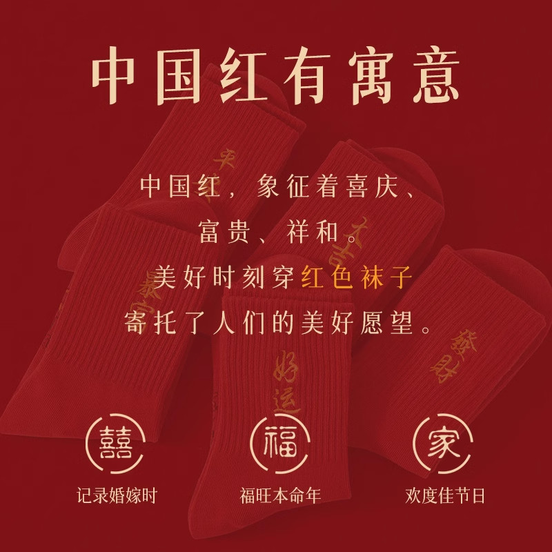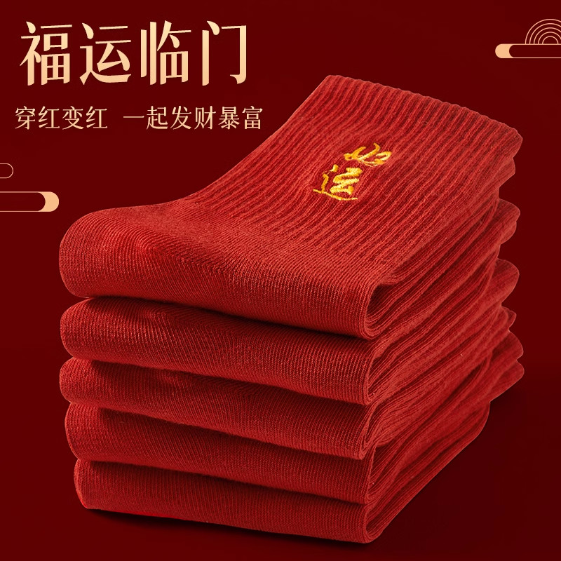 📚 本命年大红袜子男女情侣款四季发财好运中筒袜 3双装起多规格