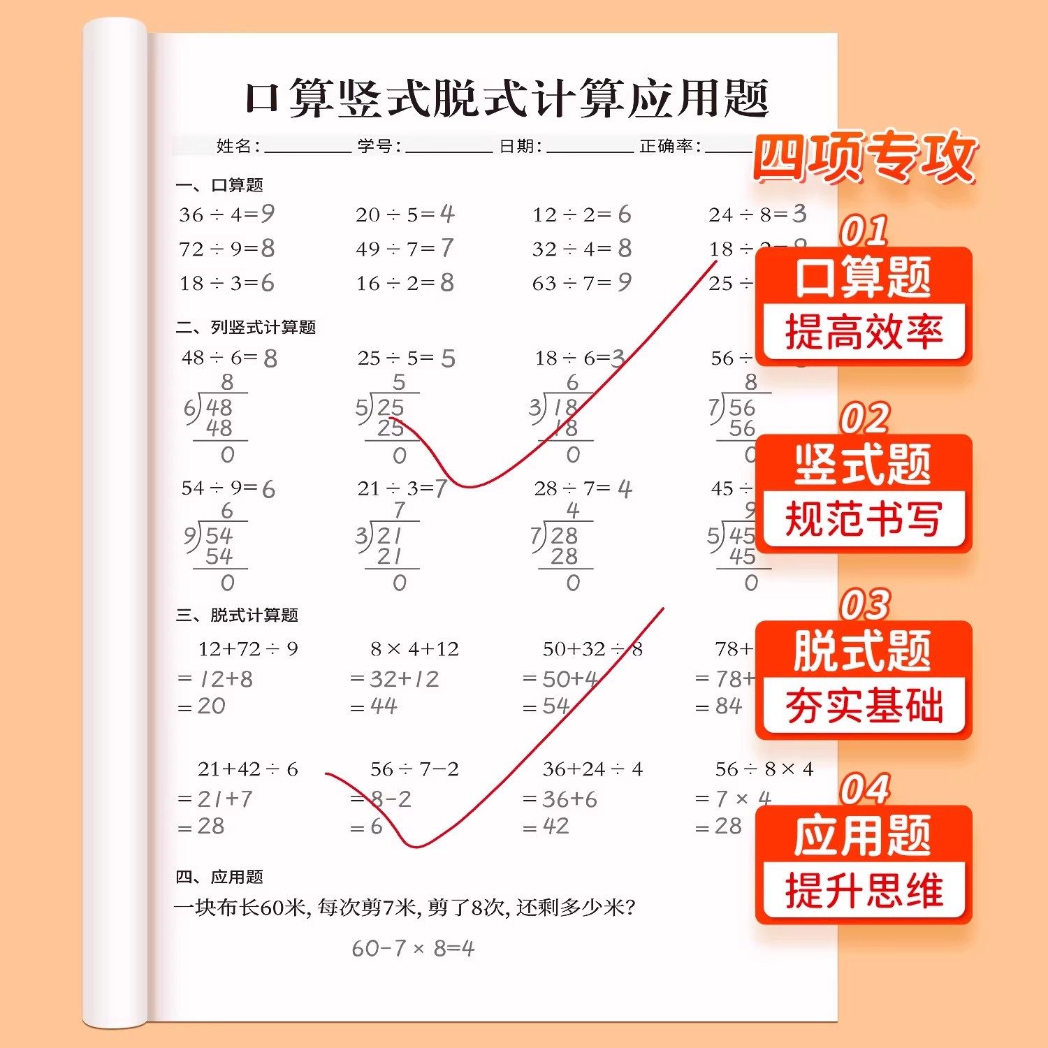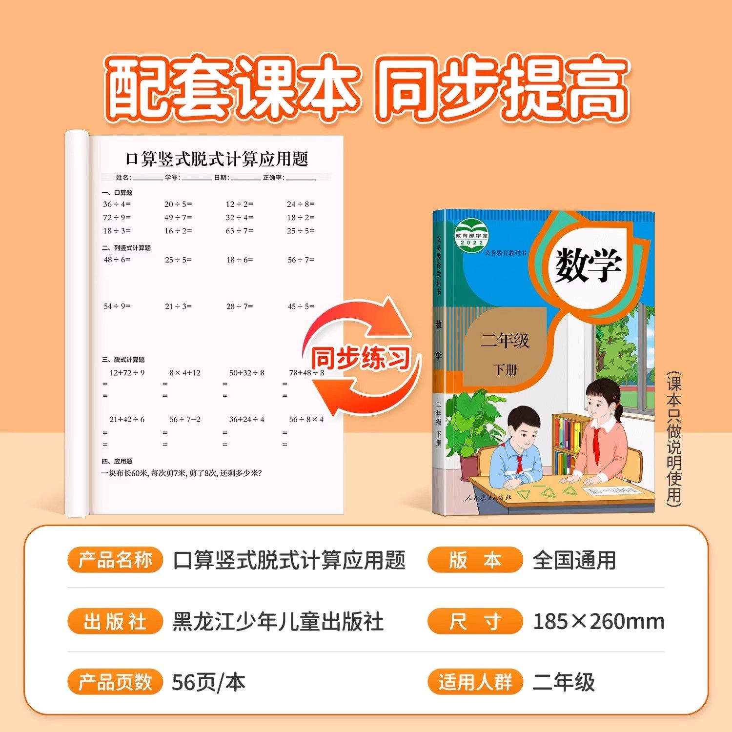📚 二年级下册数学口算天天练人教版口算题卡竖式脱式计算应用题专项强化训练每日一练小学加减乘除法速算题思维训练同步练习册上册