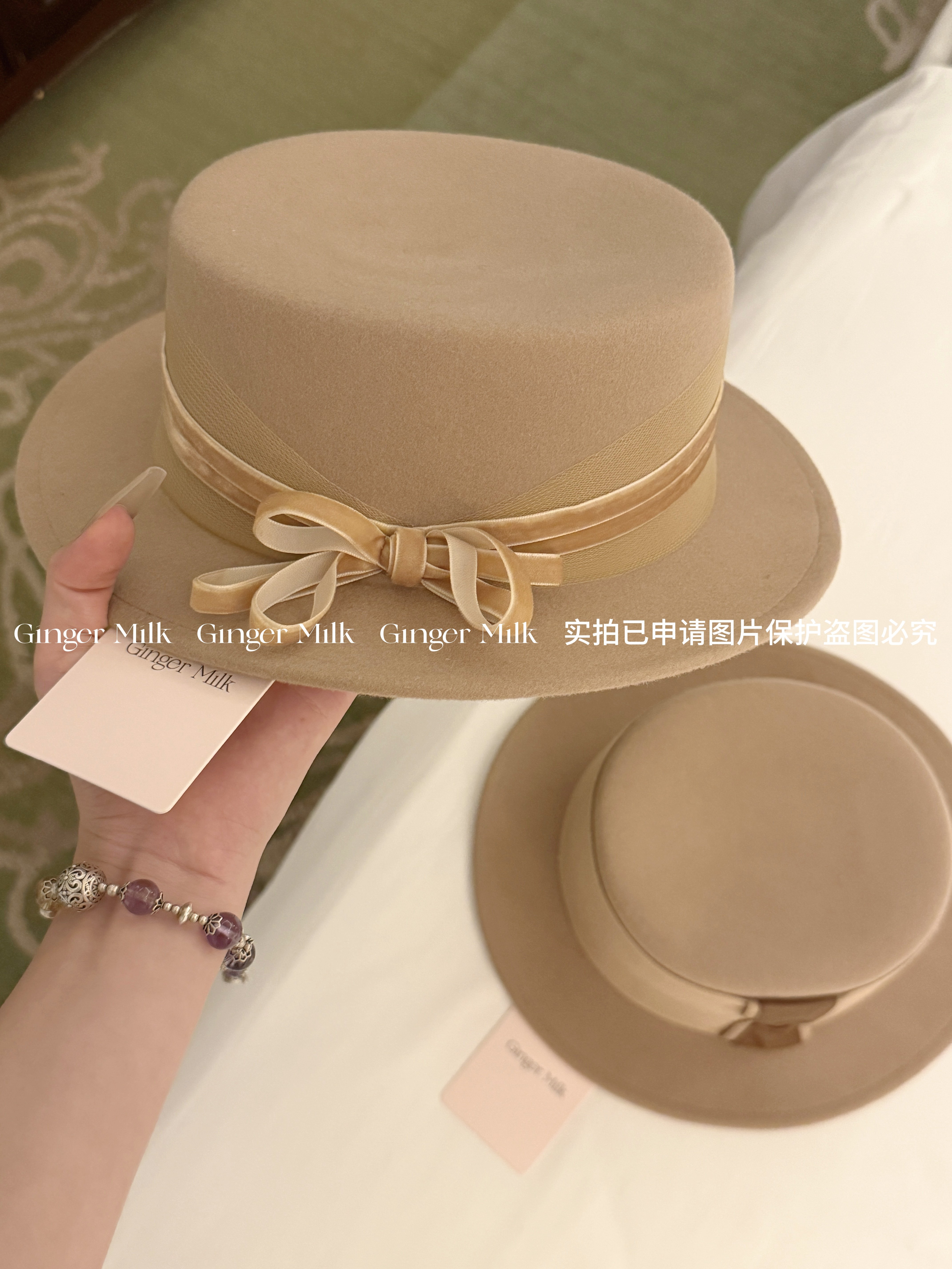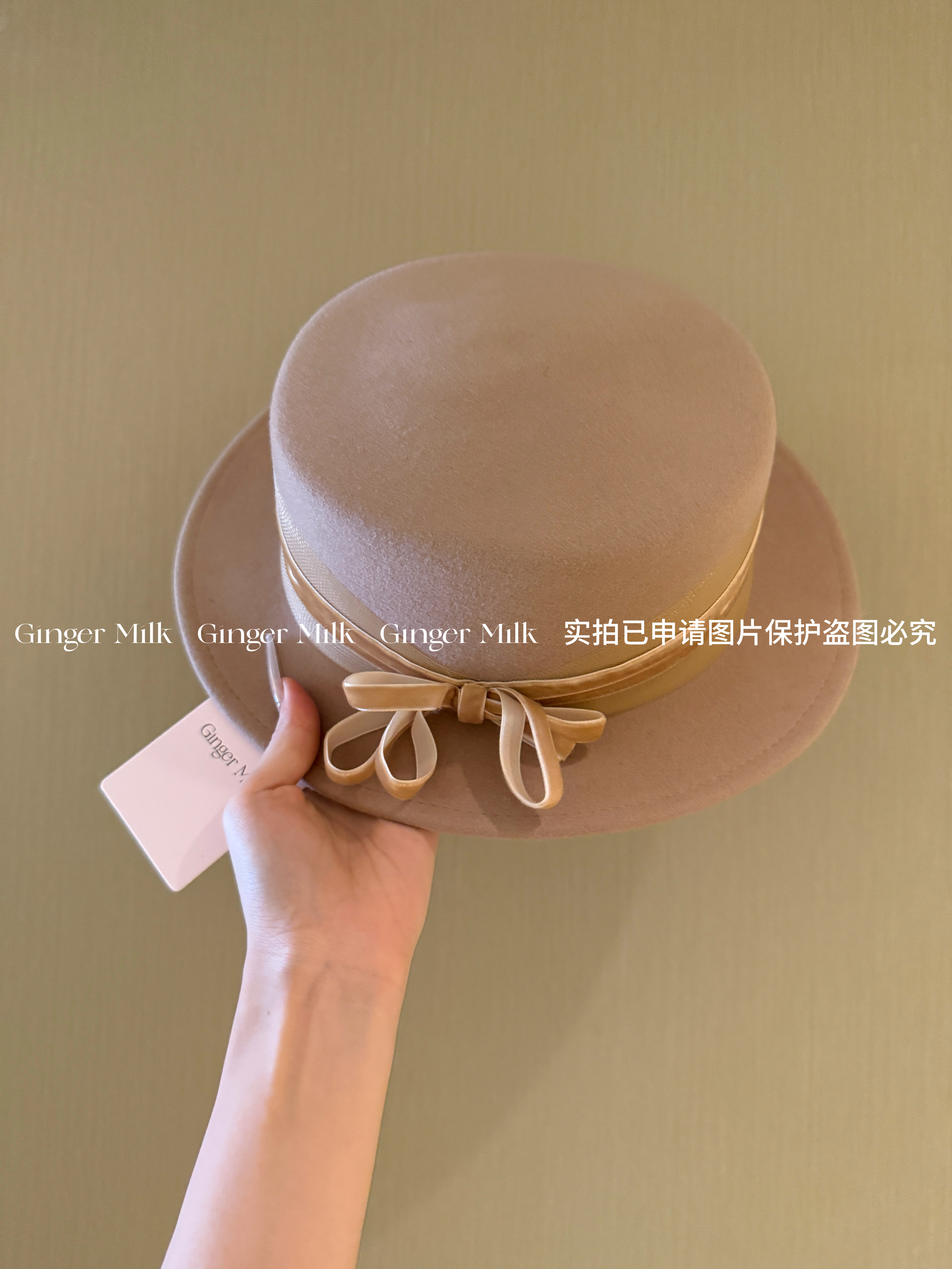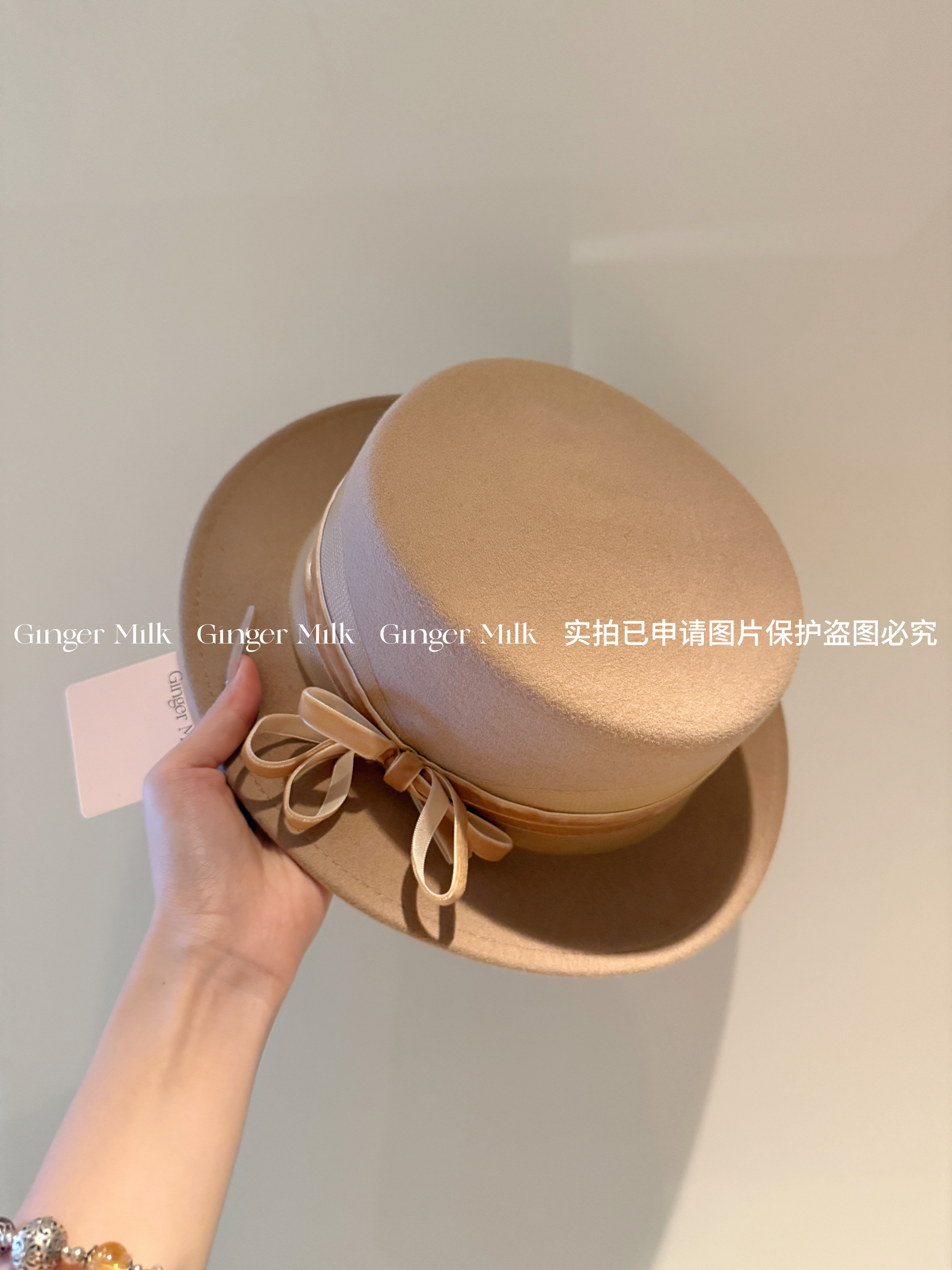 📚 GingerM 冬季恋歌 100%绵羊毛奶咖平顶平檐礼帽百搭秋冬复古搭配