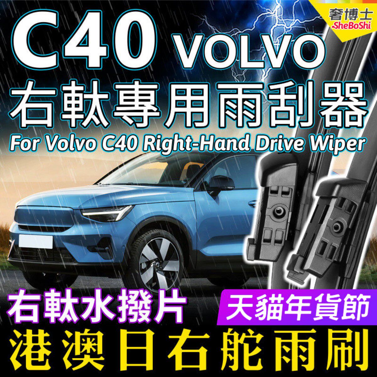📚 港澳右軚VOLVO C40雨刮器富豪C40右舵雨刷右驾前后水拨原装Wiper
