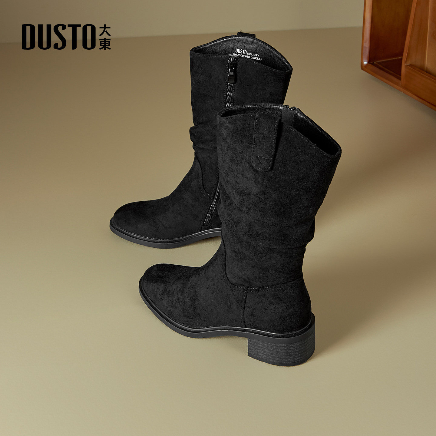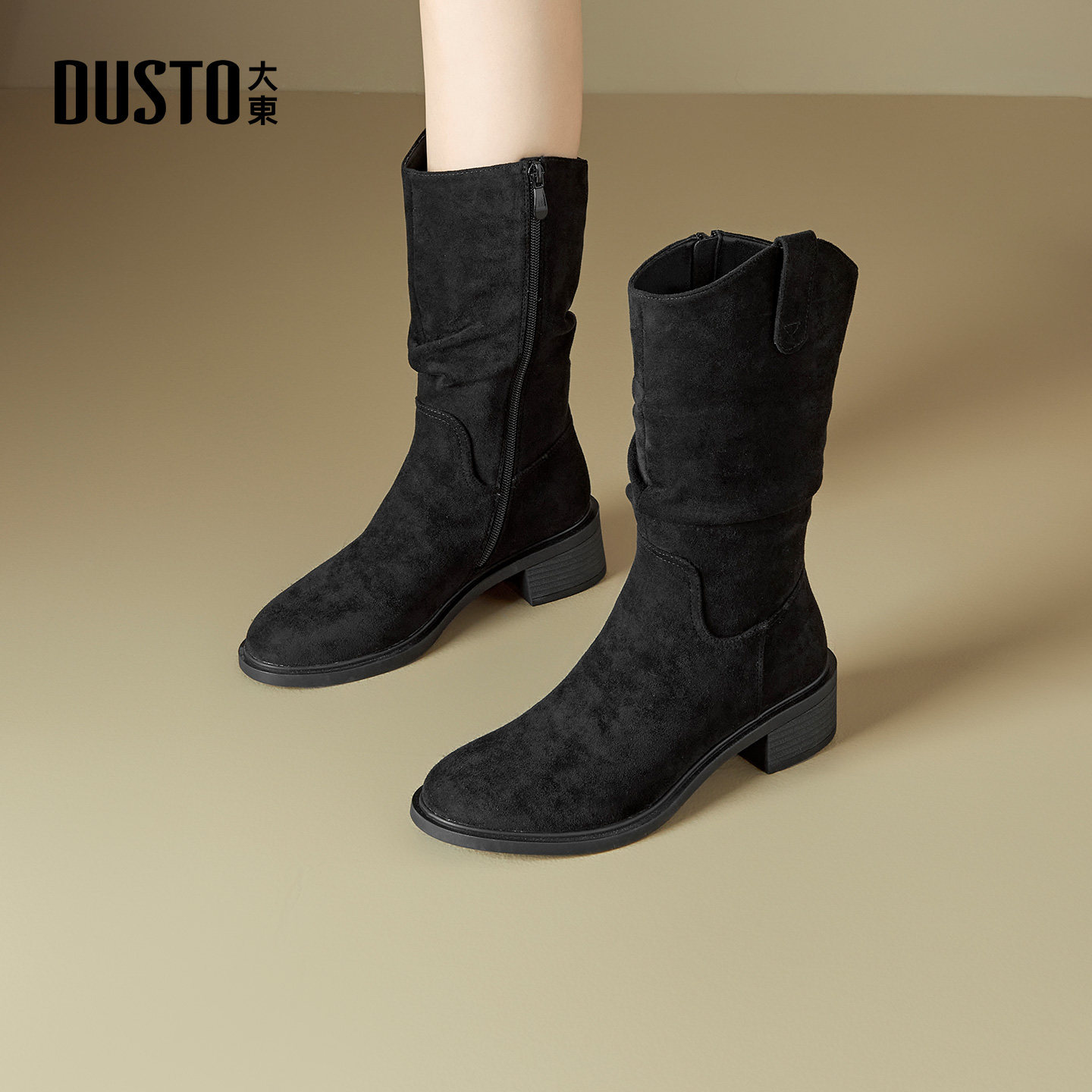 📚 大东时装靴女鞋2025年冬季新款时尚粗跟中跟圆头侧拉链中筒D0008
