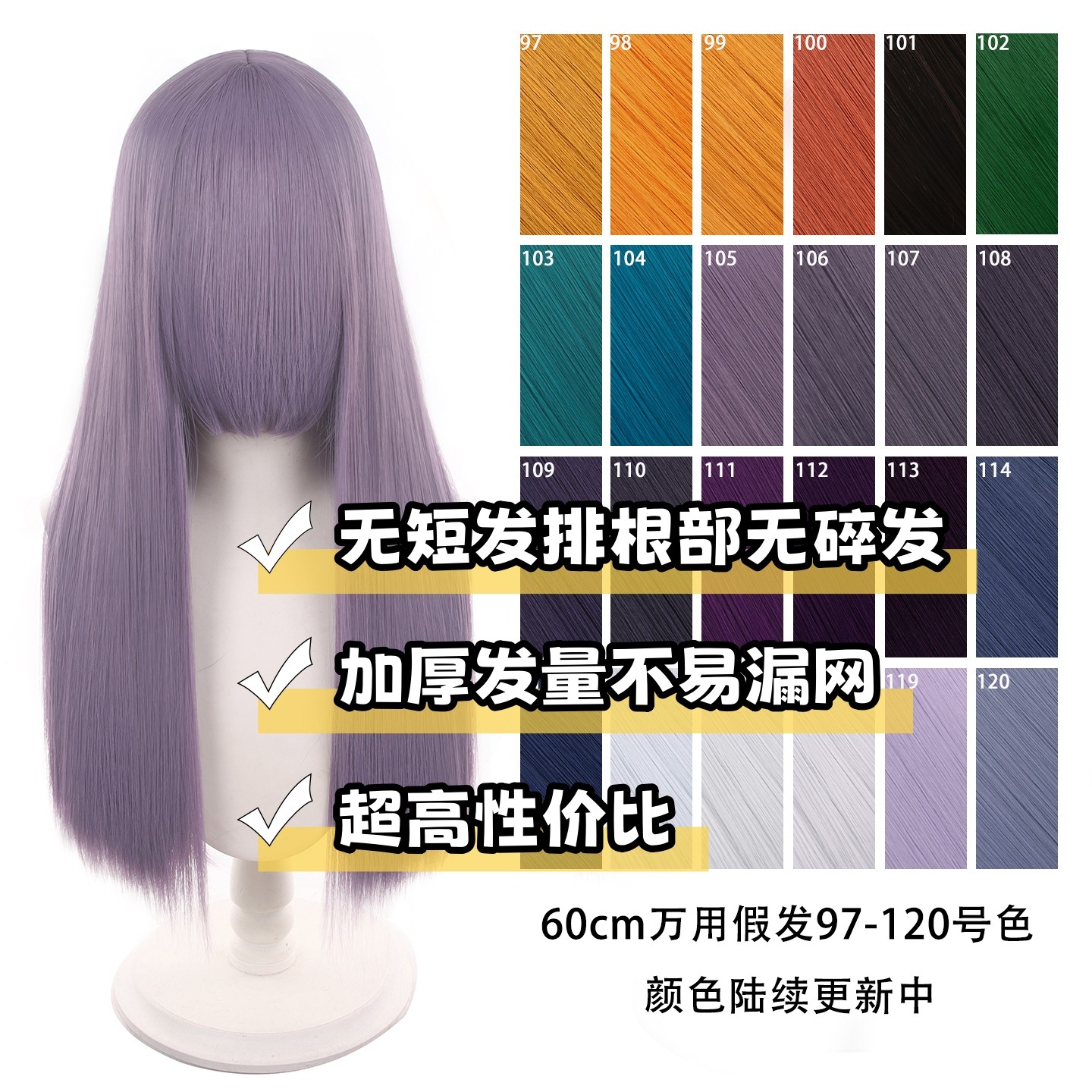 📚 【千型】万用cos假发60cm万用头皮顶加厚橘色此链接97-149