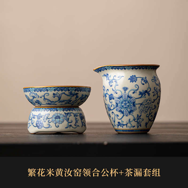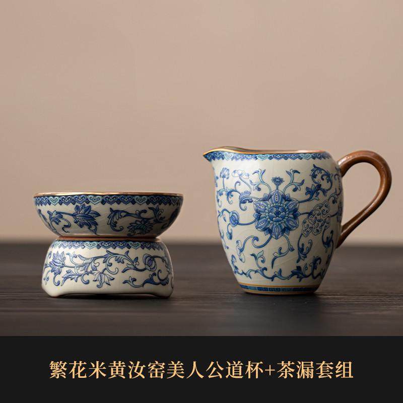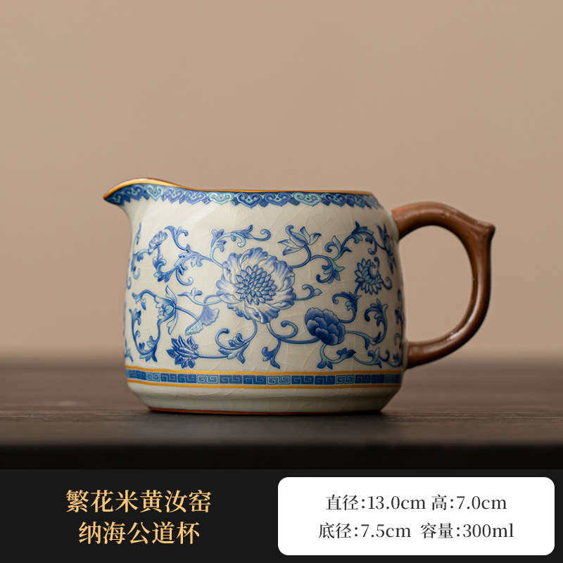 📚 兮元记青花汝窑手抓公道杯家用陶瓷公杯K茶具分茶器大号茶海匀杯