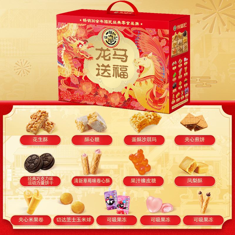📚 徐福记年货礼盒龙马送福2131g酥心糖沙琪玛凤梨酥饼干糖果大礼包