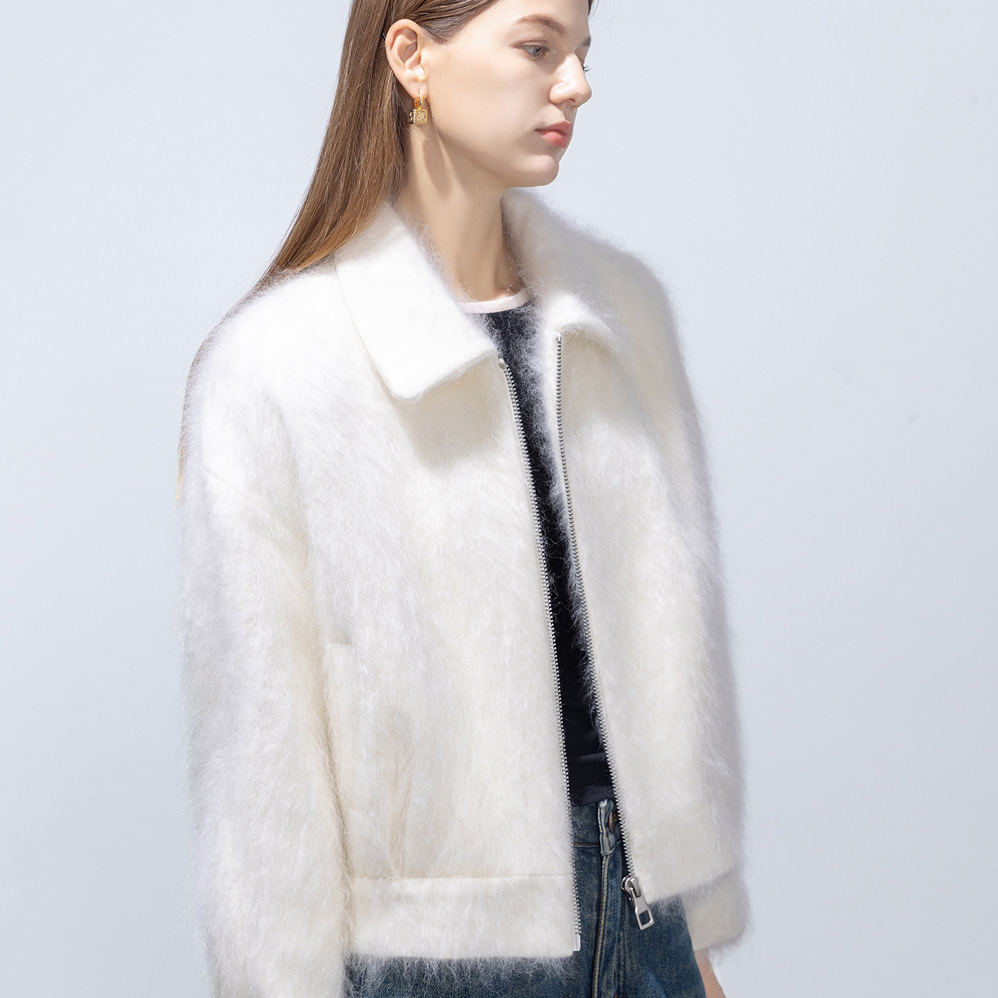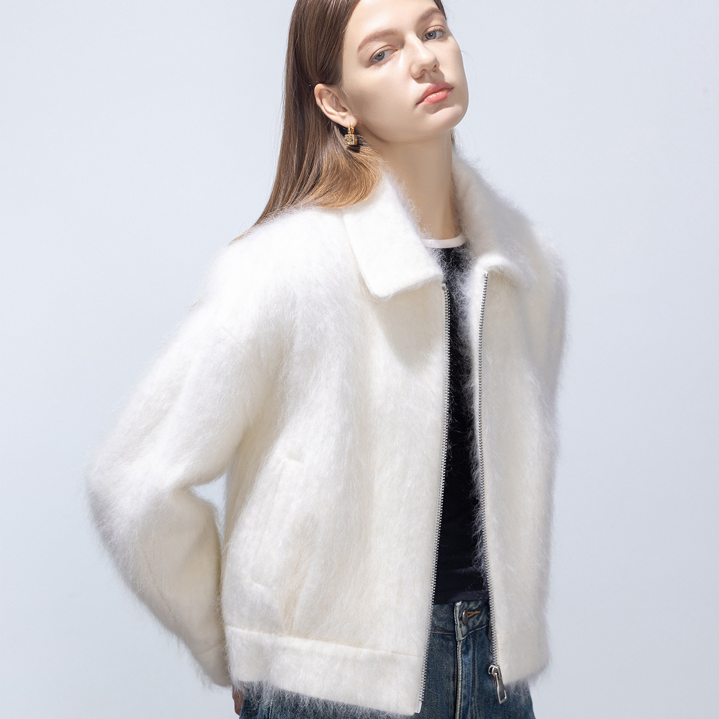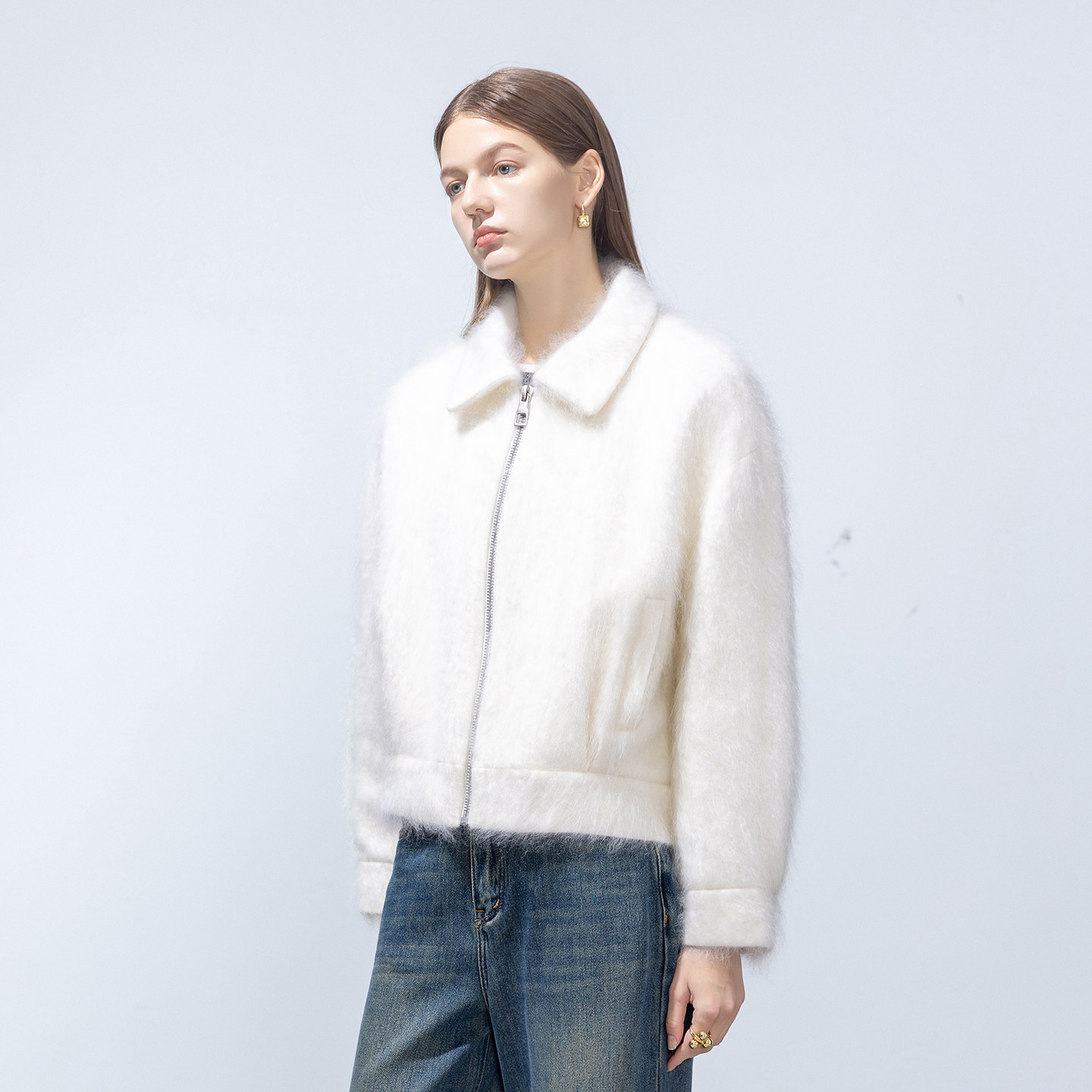 📚 GHJOD studio 轻奢“小皮草”羊绒羊毛拉绒短款小翻领毛呢外套女