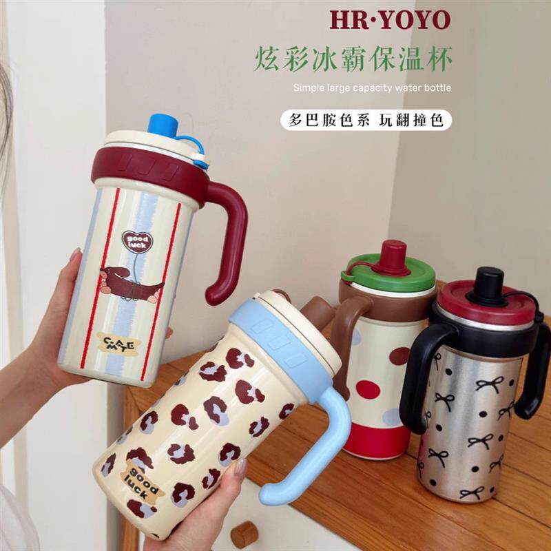 📚 高颜值保温水杯摔不烂冰霸杯带吸管杯子外出便携咖啡杯壶运动户外