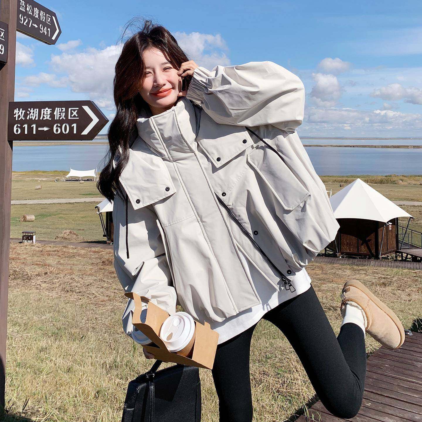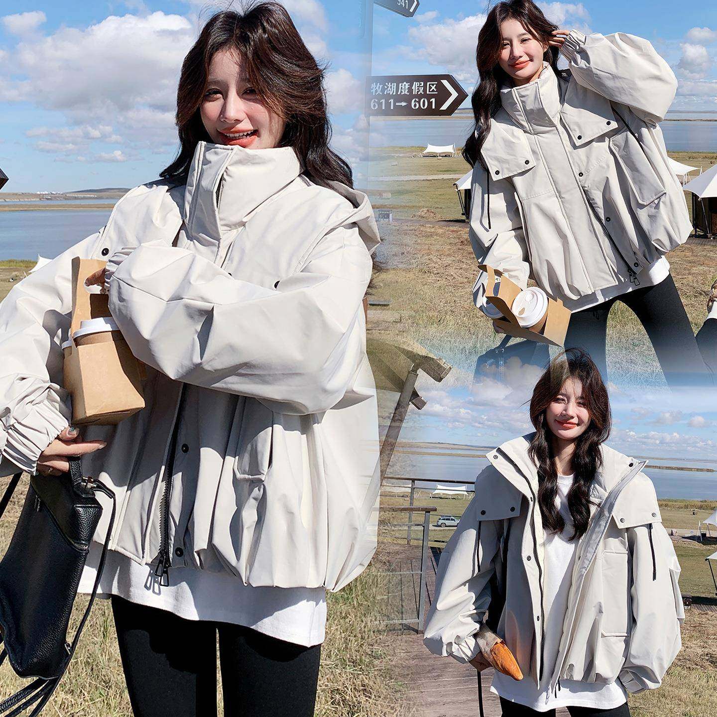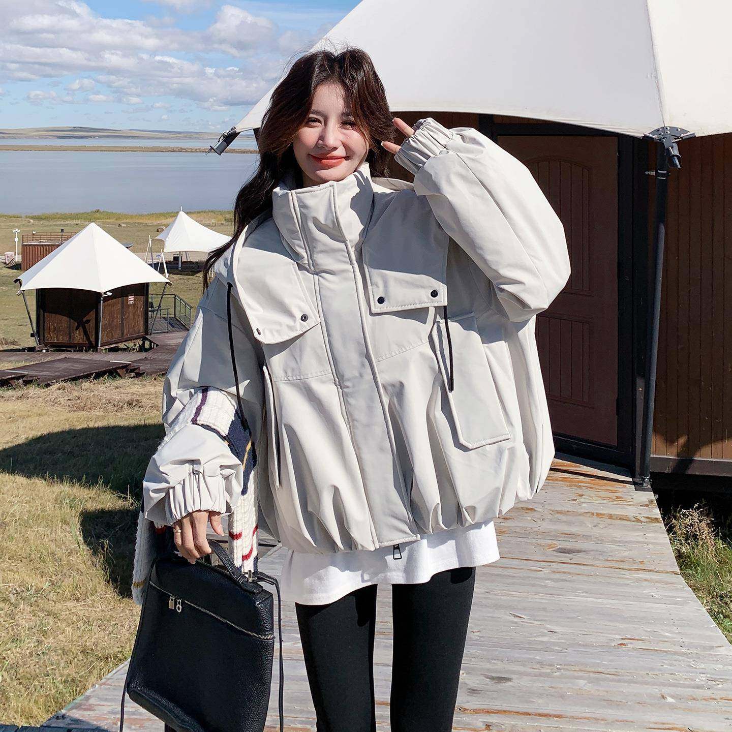 📚 灰白色工装连帽羽绒服女短款2025冬鸭新韩版加厚款减龄9白D006-73