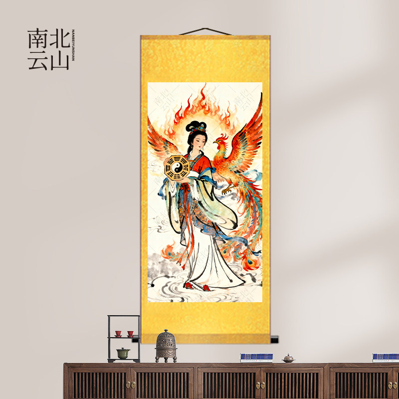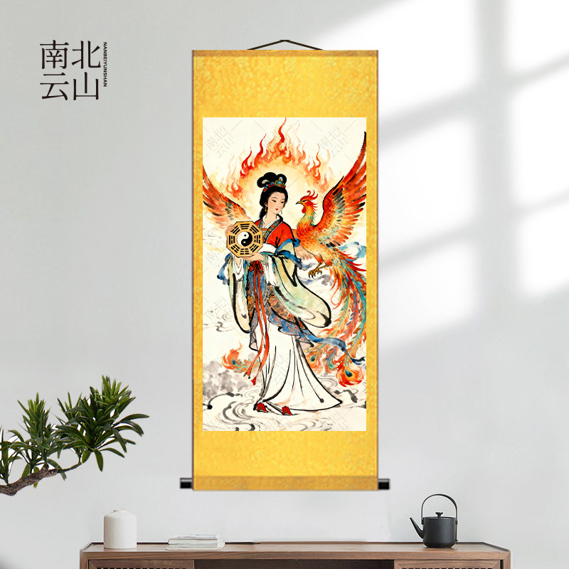 📚 九天玄女娘娘画像国画供奉挂画无极元君办公室中式玄关装饰卷轴画