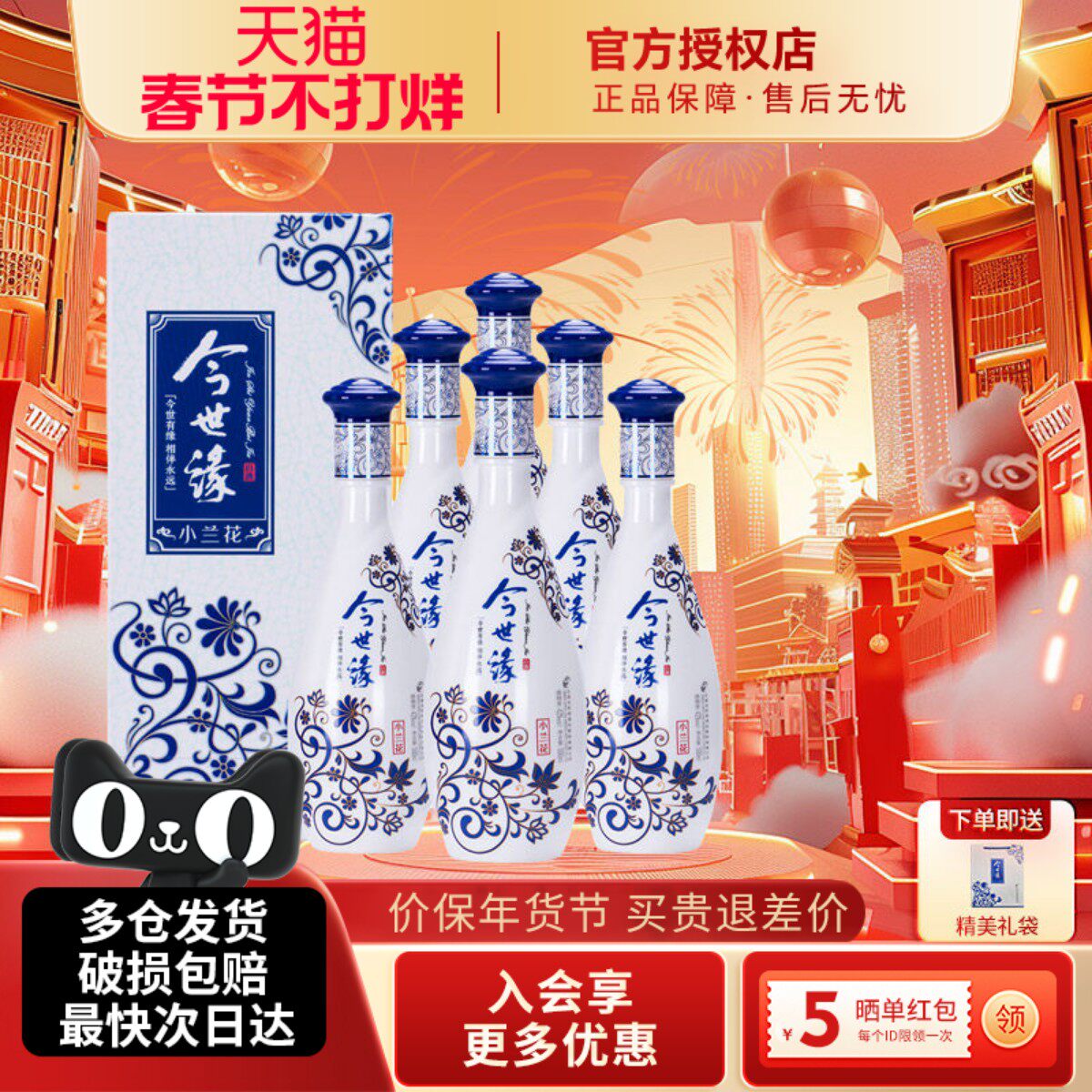 📚 今世缘小兰花42度浓香型白酒500ml*6瓶装整箱纯粮酒宴请自饮酒水