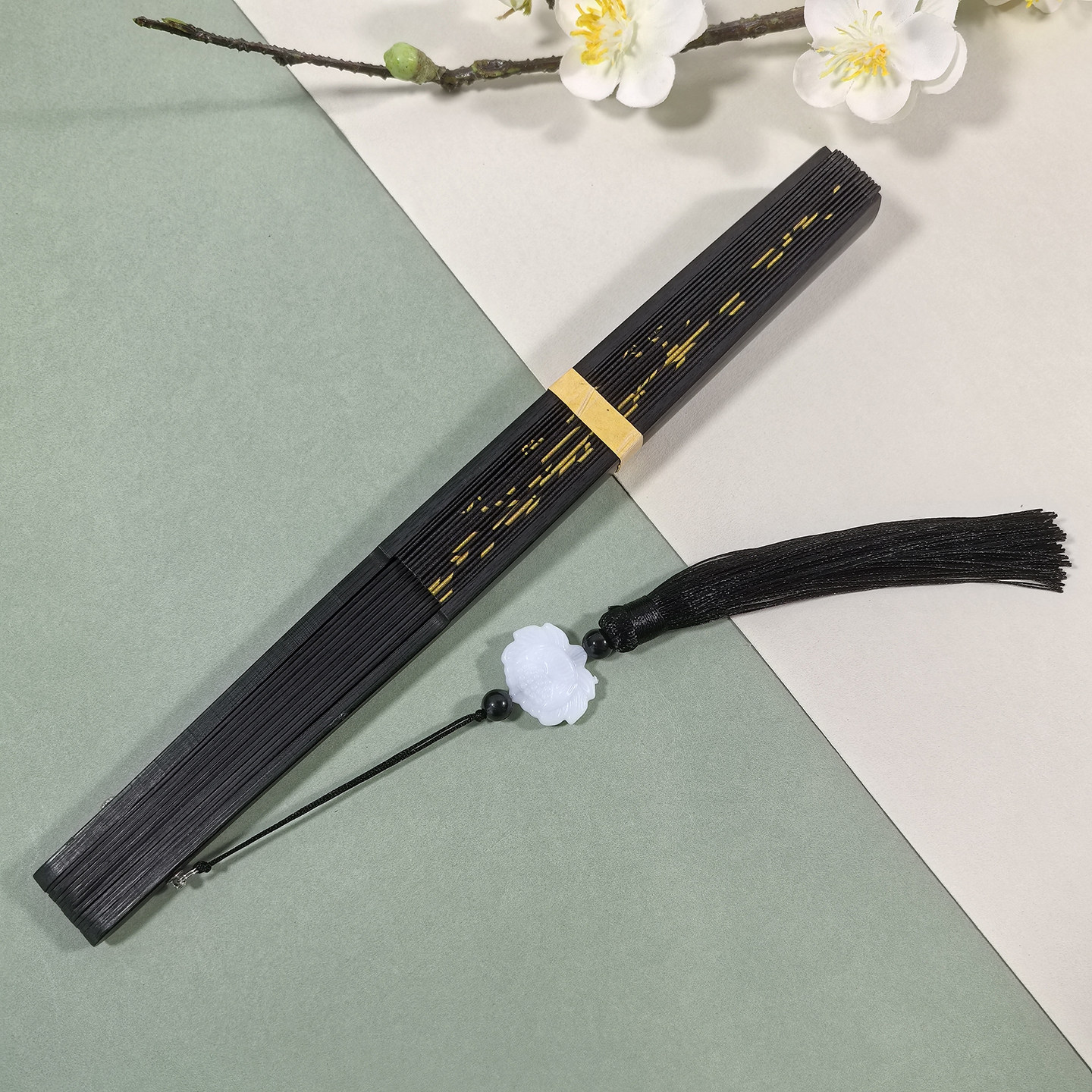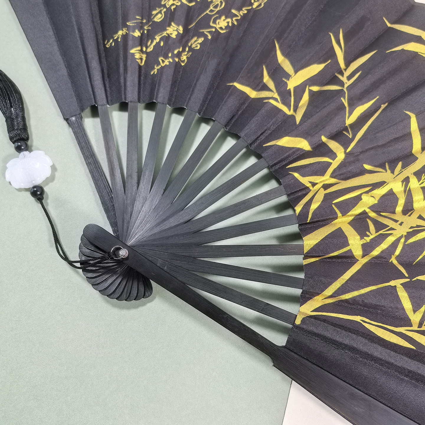 📚 八寸黑色烫金折扇双面扇子古风折叠扇耐用绢布扇中国风扇男女通用