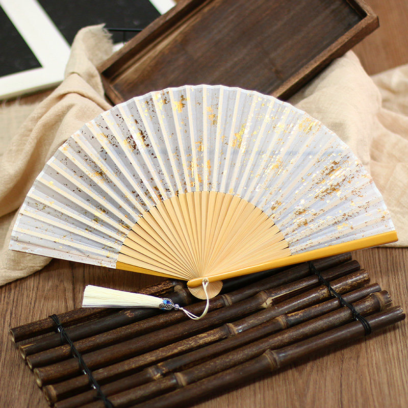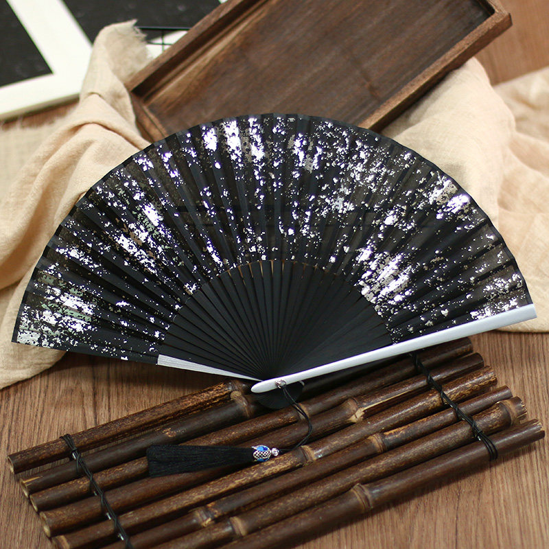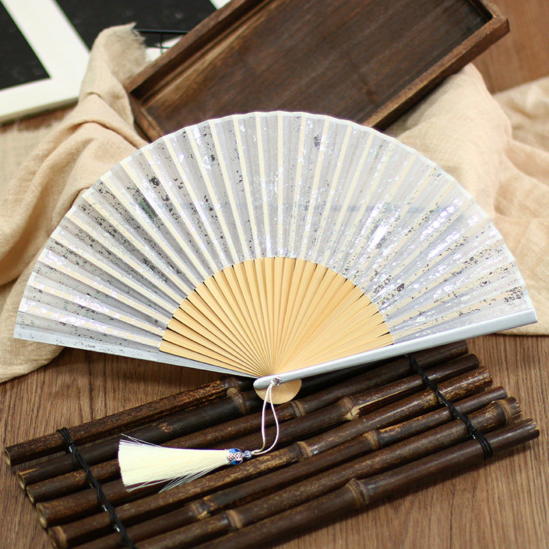 📚 中国风扇6寸新中式扇国风摄影洒金洒银真丝女式古风折扇2025新款