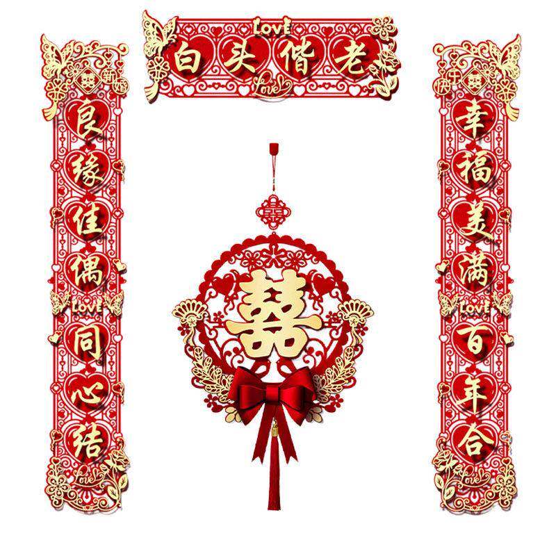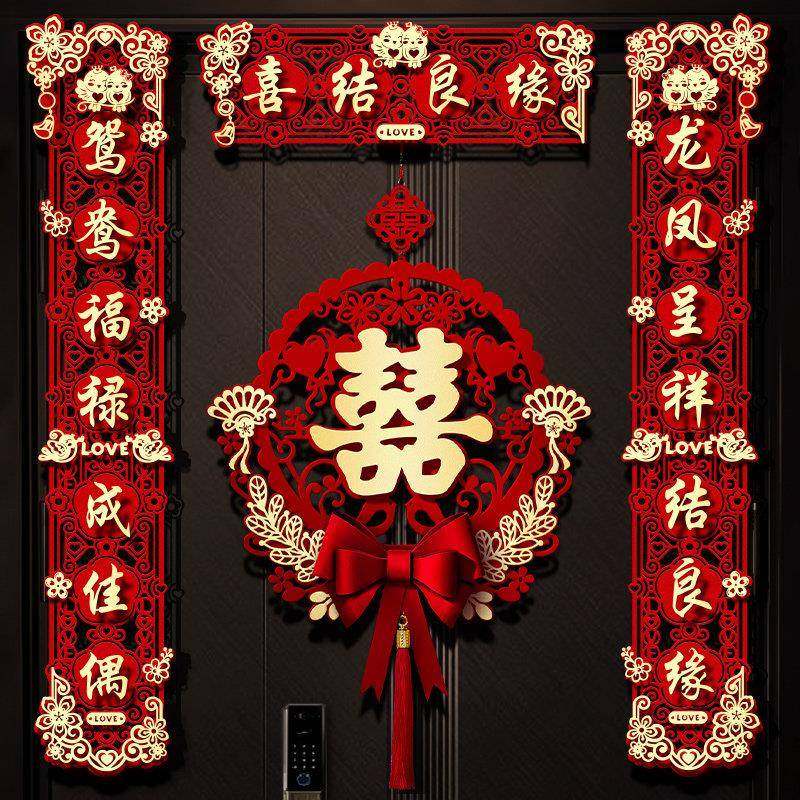 📚 结婚对联男方大门喜字贴喜联全套2024新款婚庆女方出嫁新婚房门联