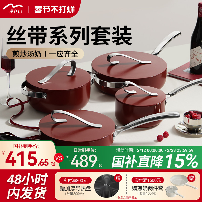 📚 velosan温仑山加深煎炒锅套装不粘家用炒菜锅煎牛排平底锅丝带锅