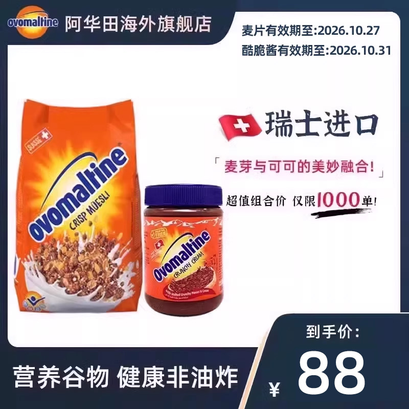 📚 阿华田瑞士进口燕麦片500g+巧克力酷脆酱380g【效期26年10月底】