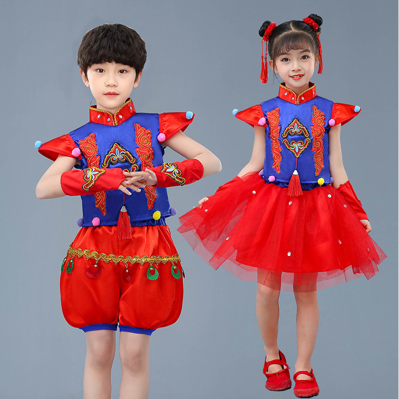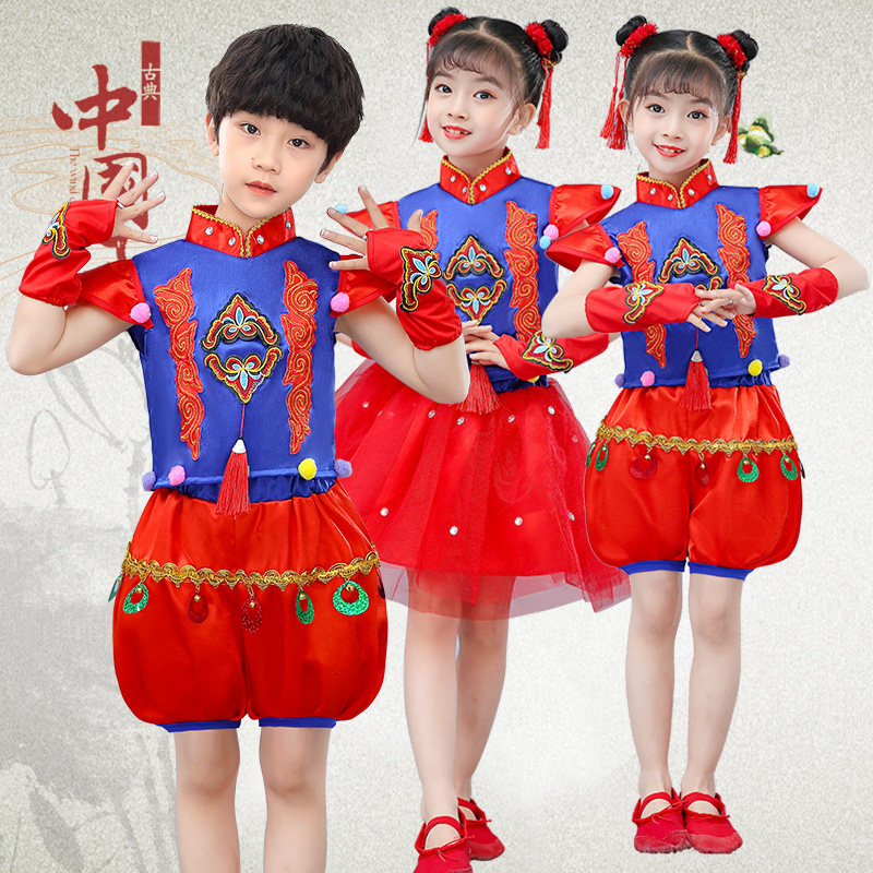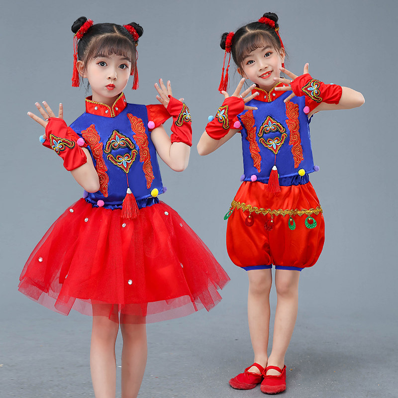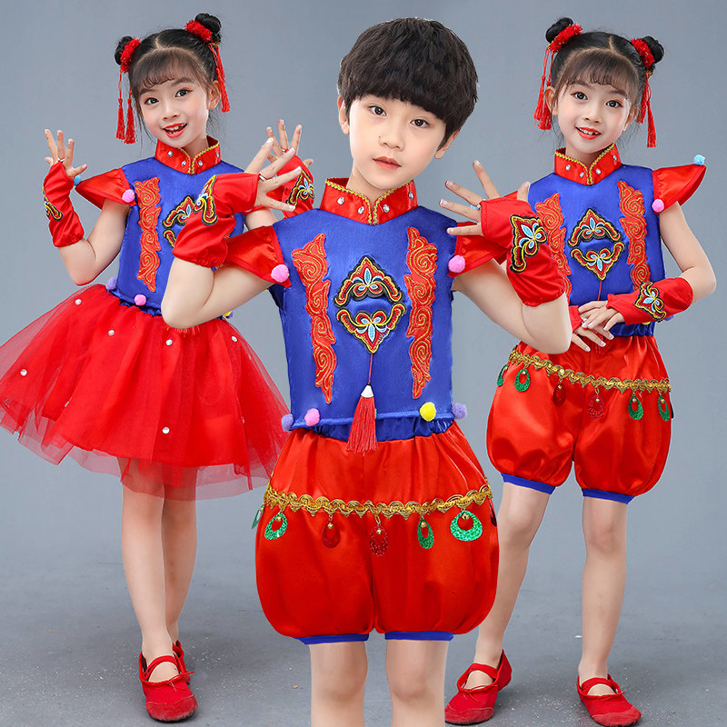 📚 元旦儿童中国小梦娃舞蹈演出服幼儿园吉祥福气娃娃民族风表演服装