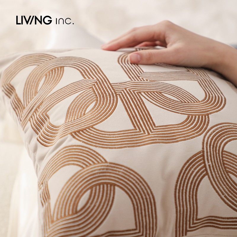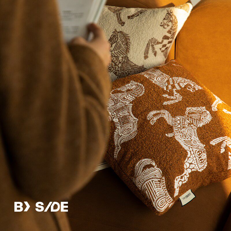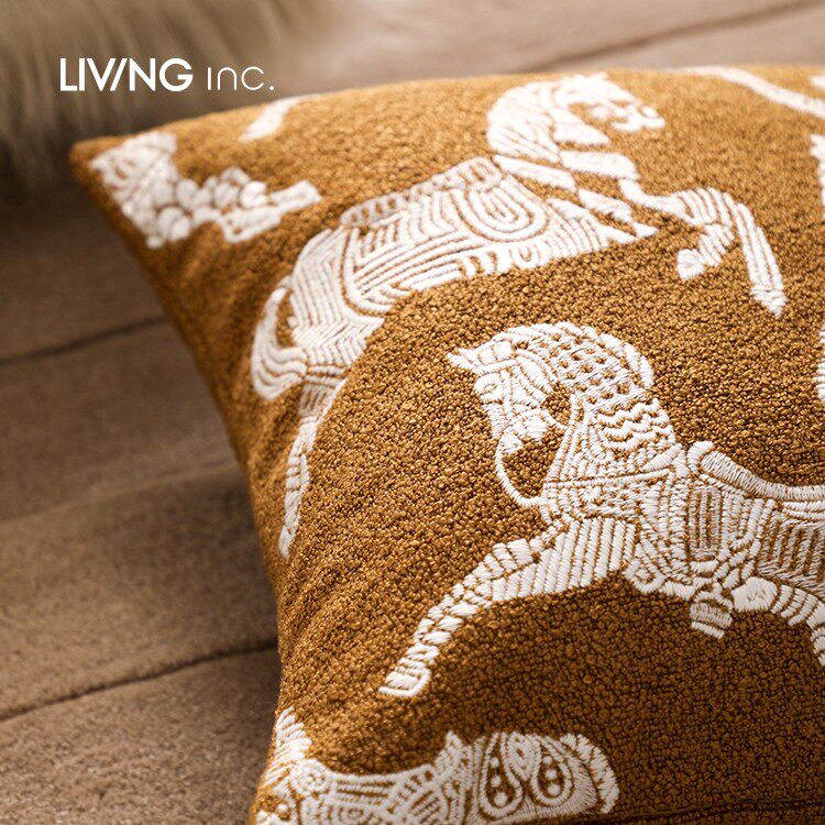 📚 LIVING inc.2026生肖马 茶色法式轻奢刺绣抱枕沙发客厅皮草靠背垫