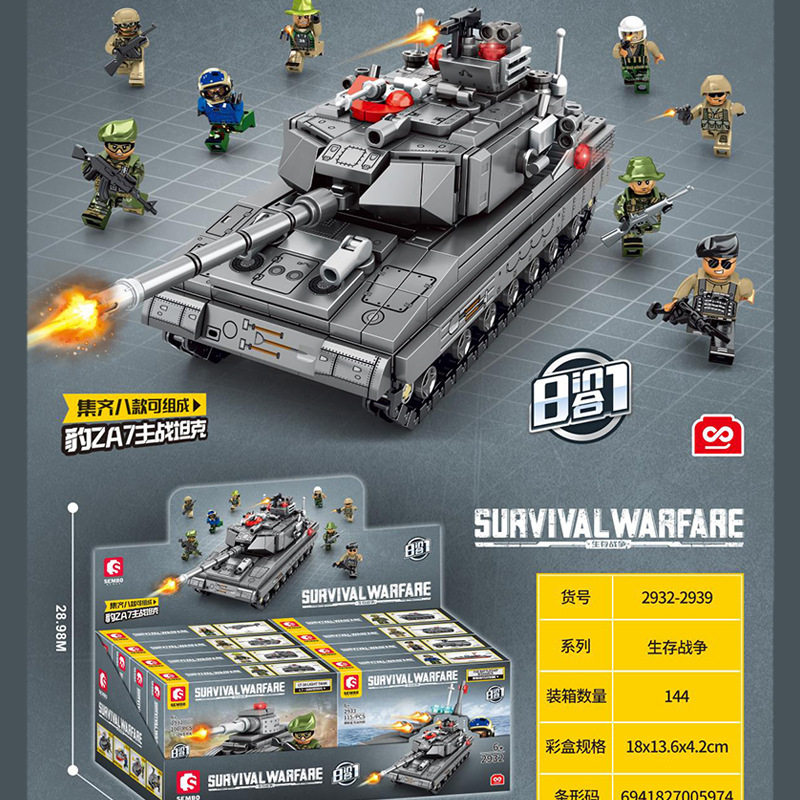 📚 森宝积木军事生存战争8合体豹2A7主战坦克自行火炮拼装玩具