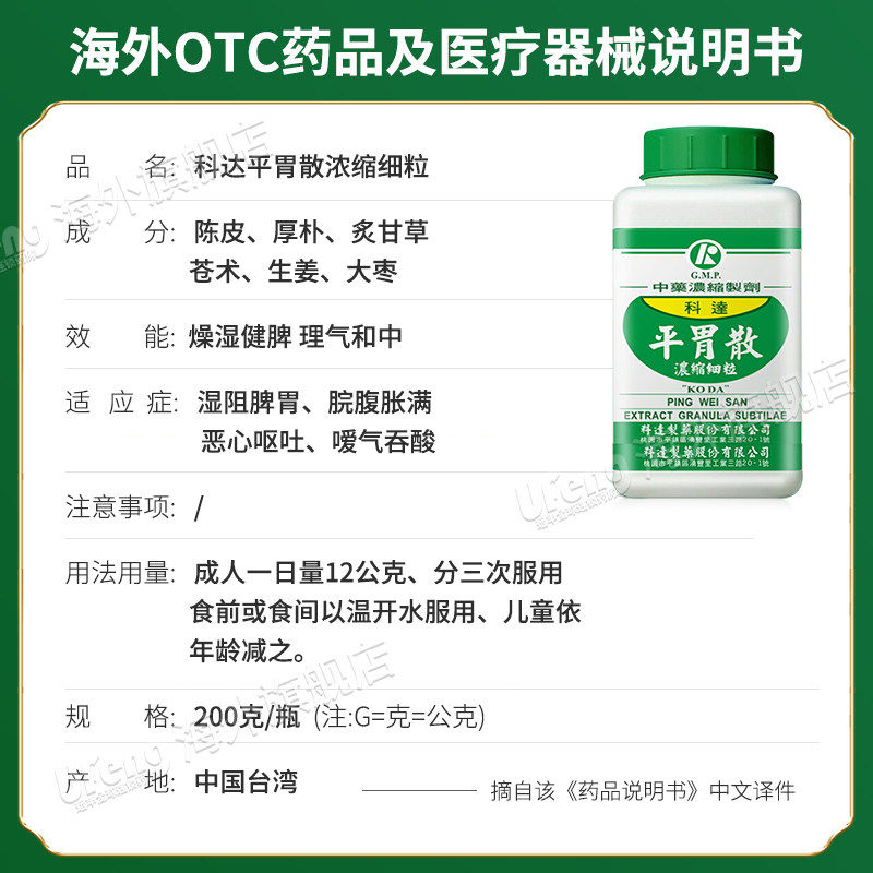📚 台湾科达制药平胃散燥湿健脾理气和中湿阻脾胃脘腹胀满恶心呕吐