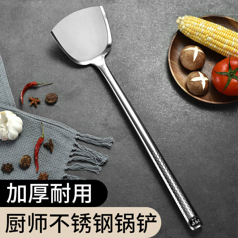 📚 加厚不锈钢锅铲木柄炒勺炒菜铲子勺子长柄大号厨师专用勺饭店手勺