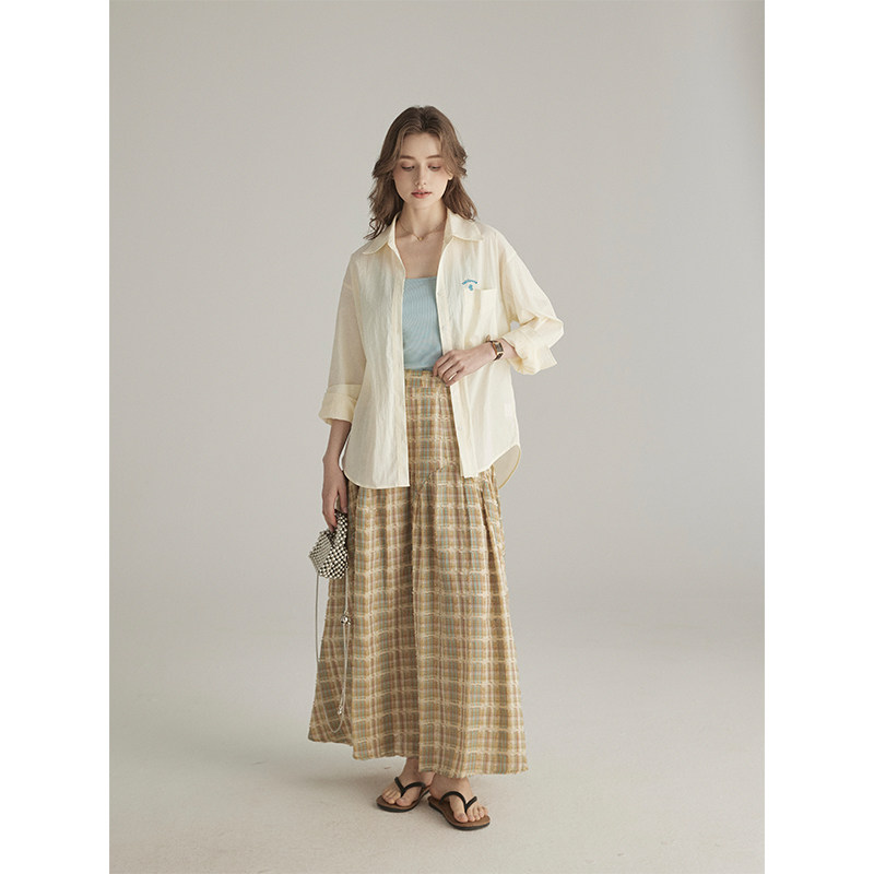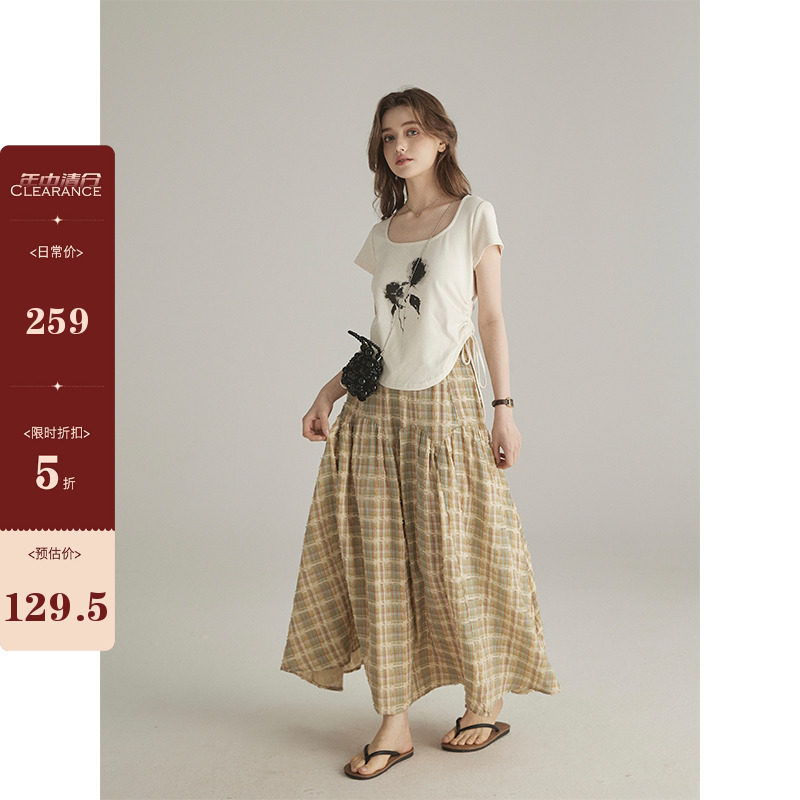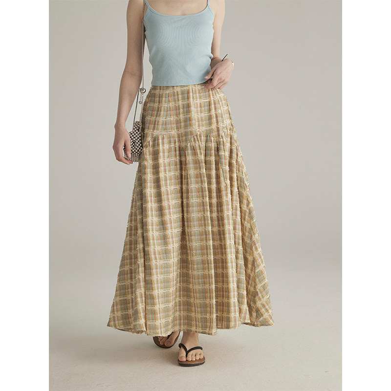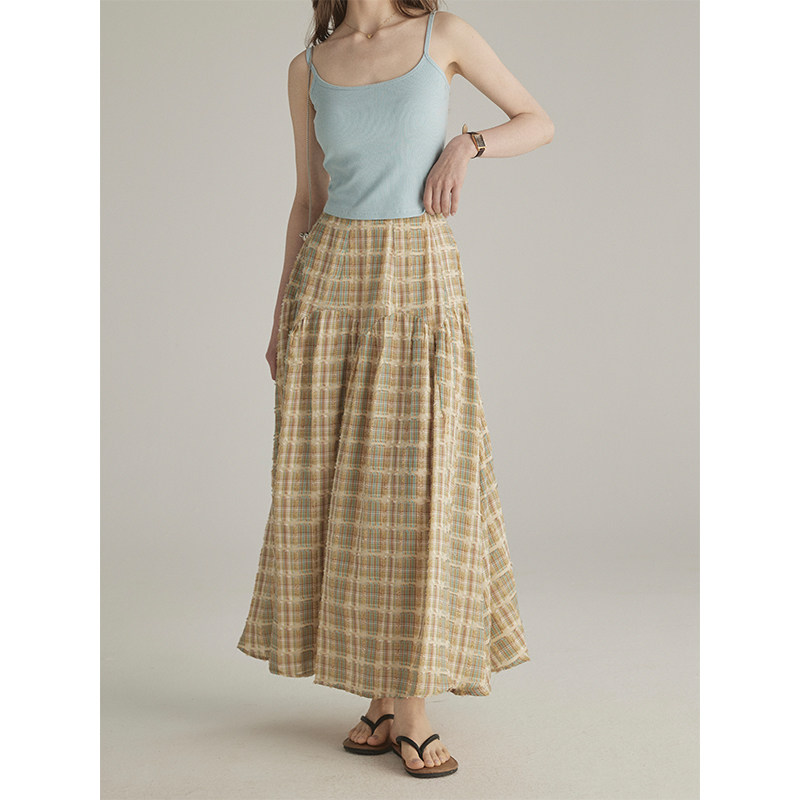 📚 三十三【twilight信笺】撞色格子半身裙女夏季小个子高腰遮胯长裙