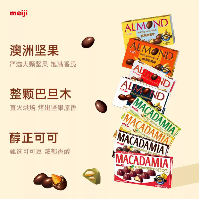 📚 明治meiji巴坦木夹心巧克力澳洲坚果果仁黑巧克力网红休闲零食