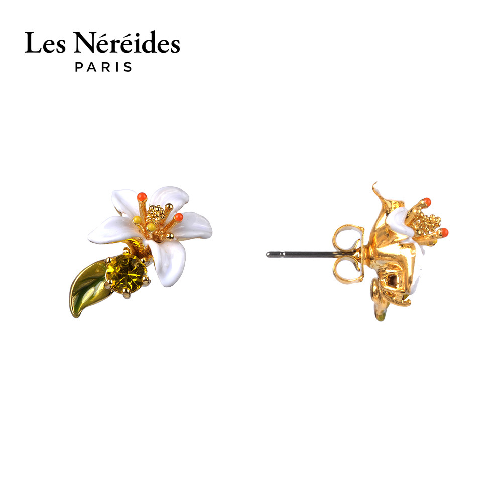 📚 Les Nereides普罗旺斯花园系列橙花耳钉白花绿叶耳饰精巧珐琅耳环