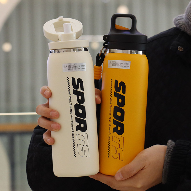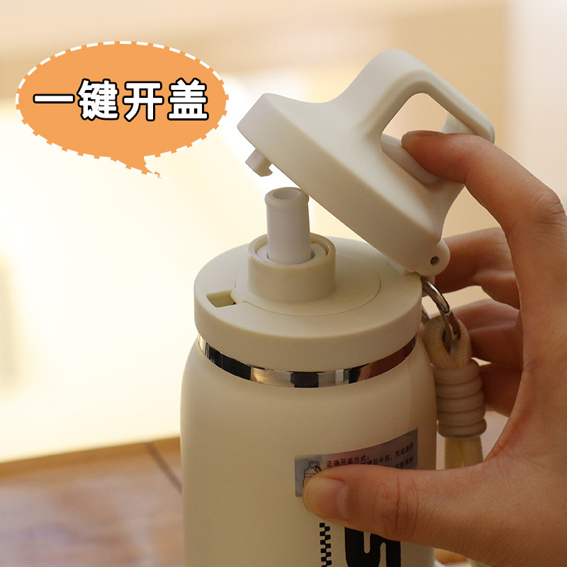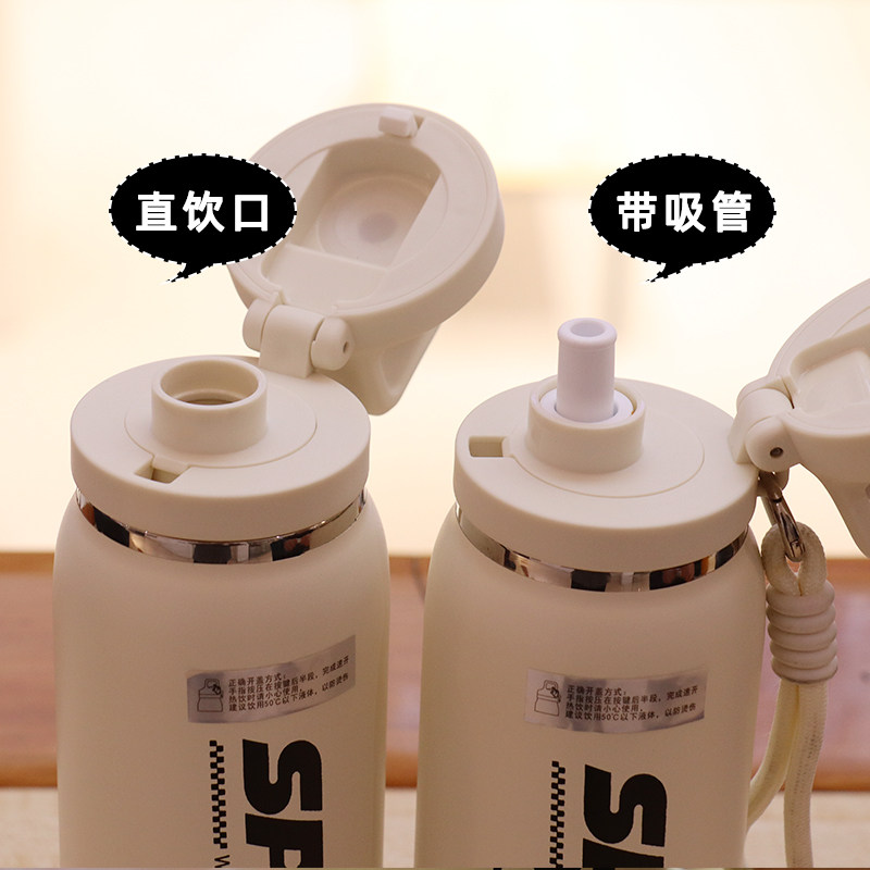 📚 简约保温杯男2025新款大容量运动骑行初中学生上学专用吸管水杯女