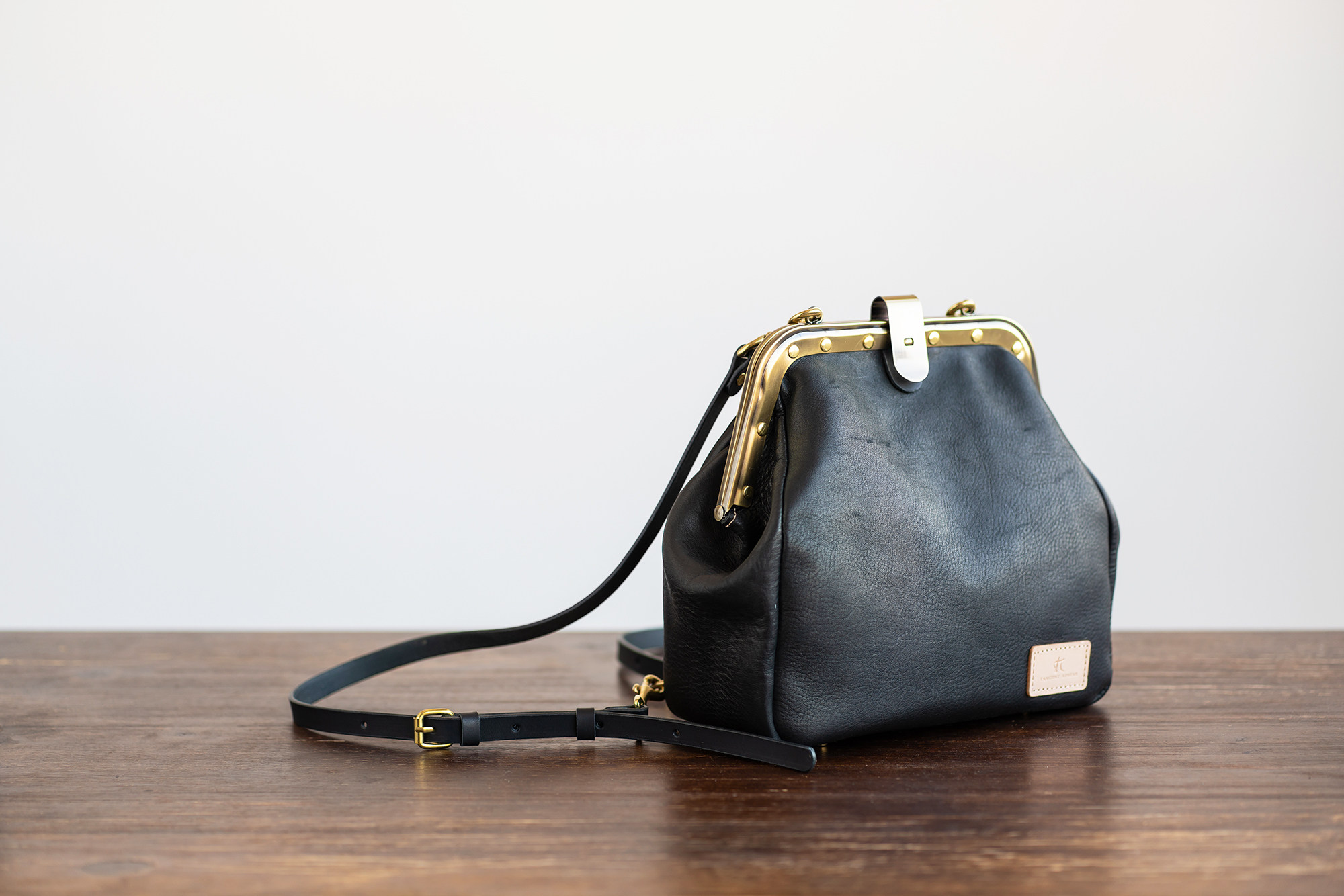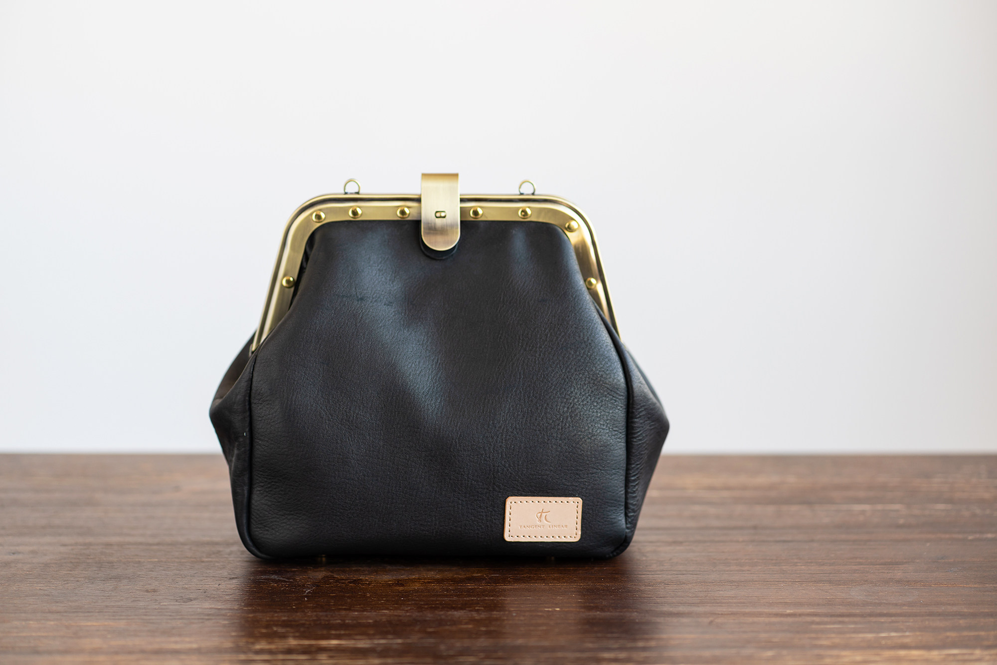 📚 传统日式口金背包真皮复古医生包女士背包手工皮包黑色