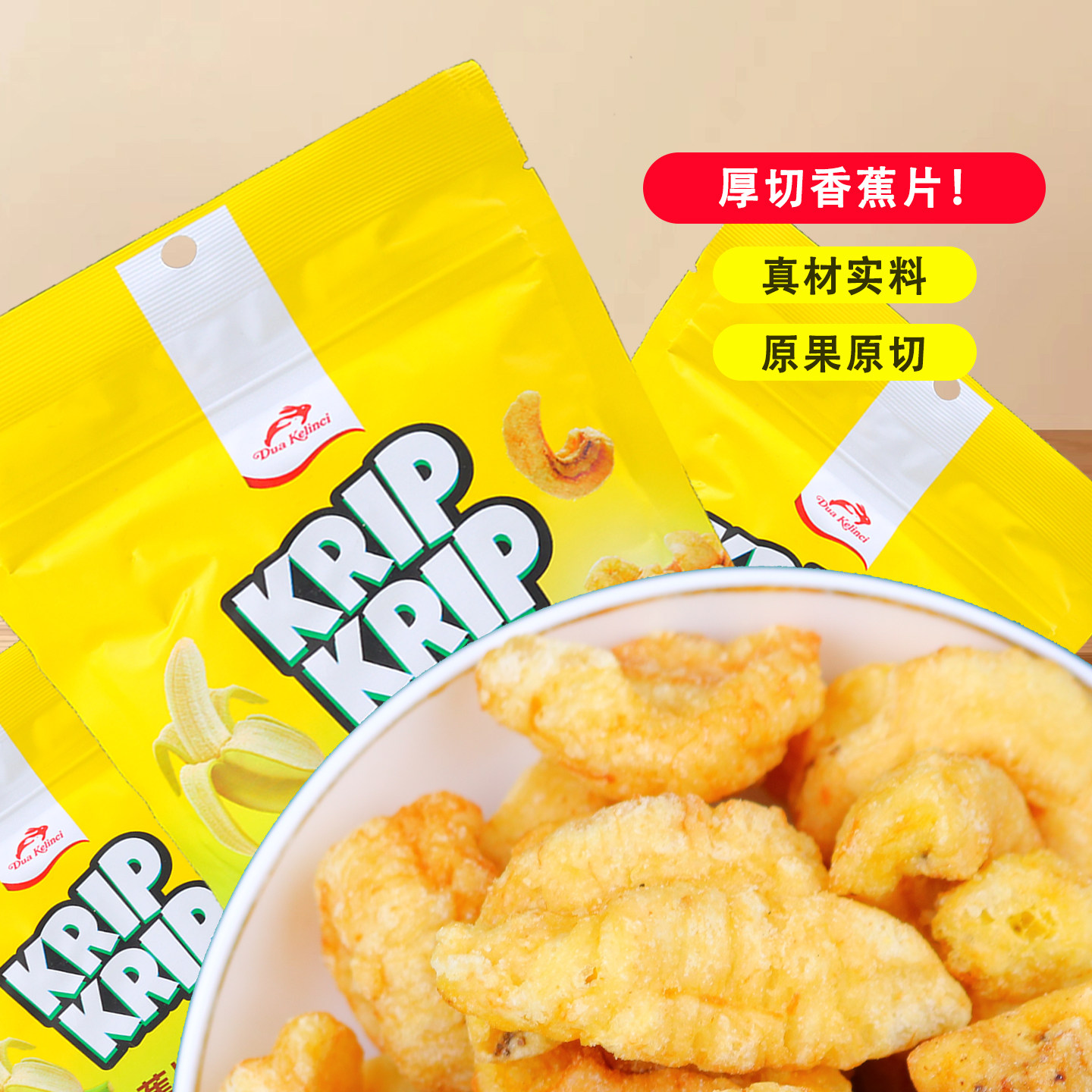 📚 红白兔厚切香蕉片80g/袋脆片蜜饯果干办公室追剧解馋休闲小零食