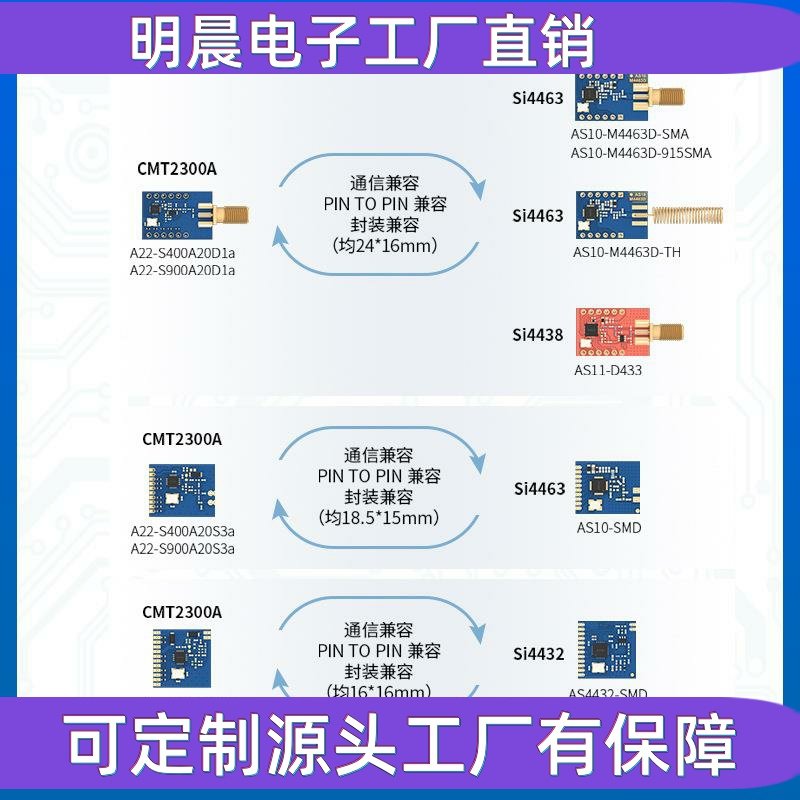 📚 科技433M无线传输收发数传模块CMT2300A可兼容封装SI4463
