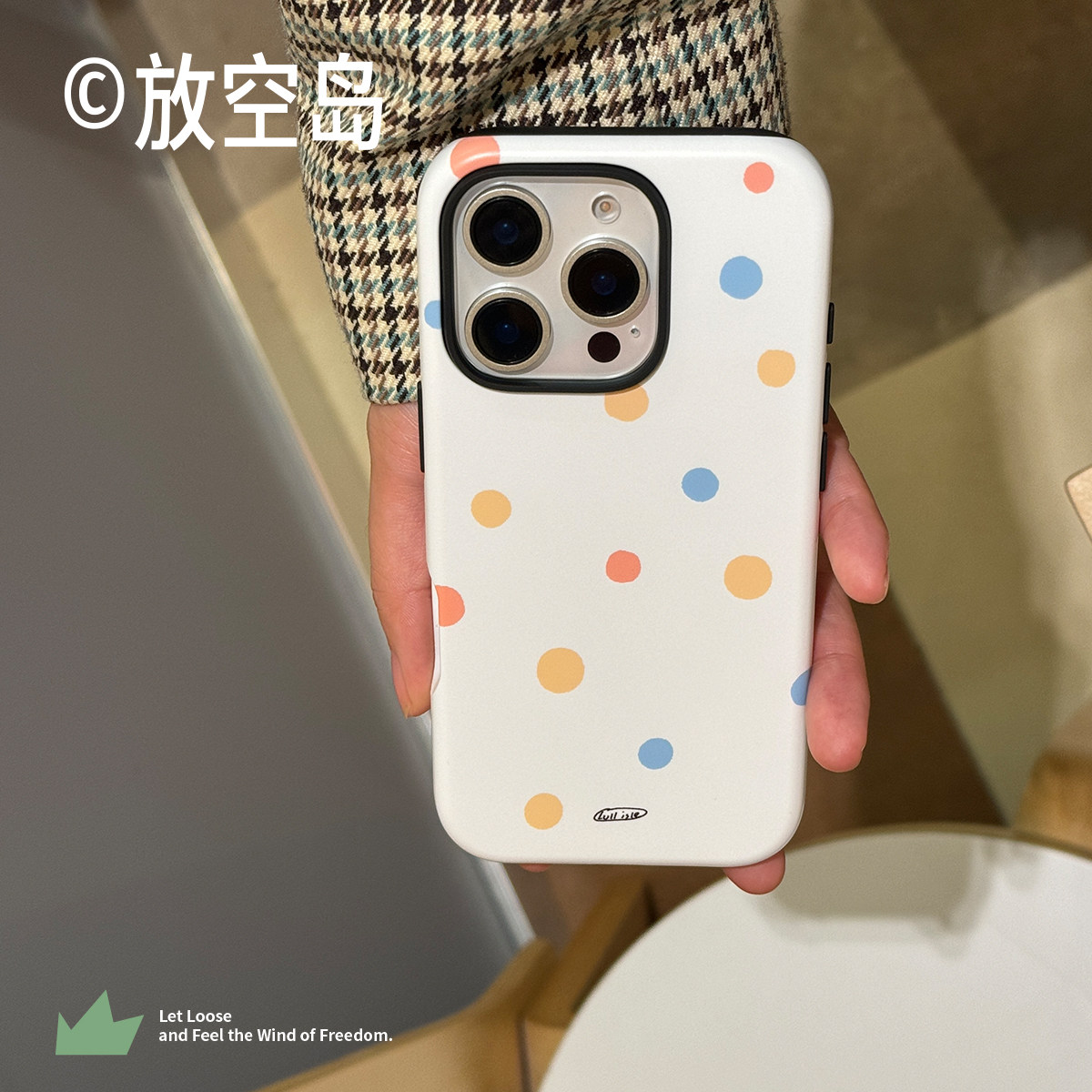 📚 好梦波波丨放空岛原创设计正版丨进口韩国菲林手机壳二合一磁吸磨砂哑光白色波点ins适用于苹果16promax