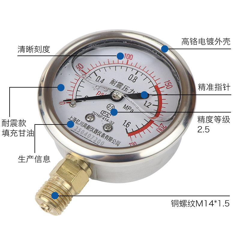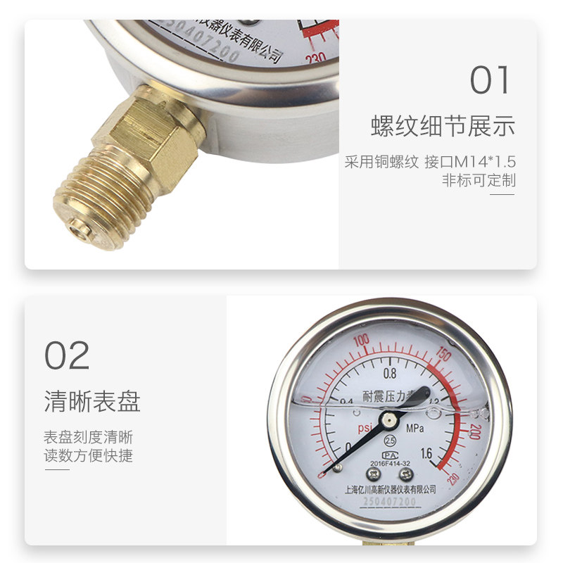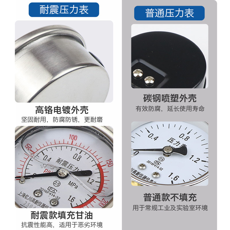 📚 耐震压力表yn60径向1.6mpa水压表负压表氧气表液压气压真空油压表