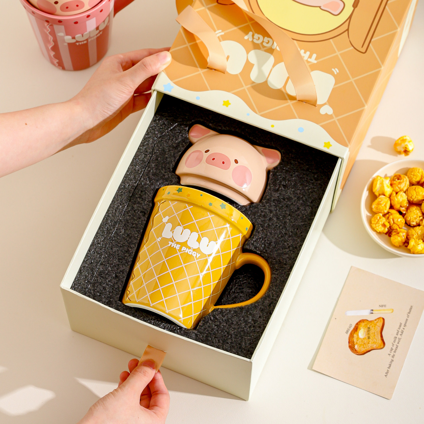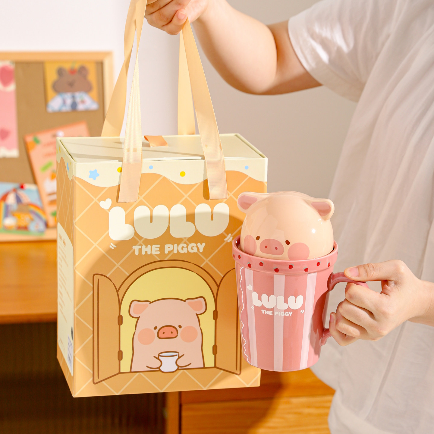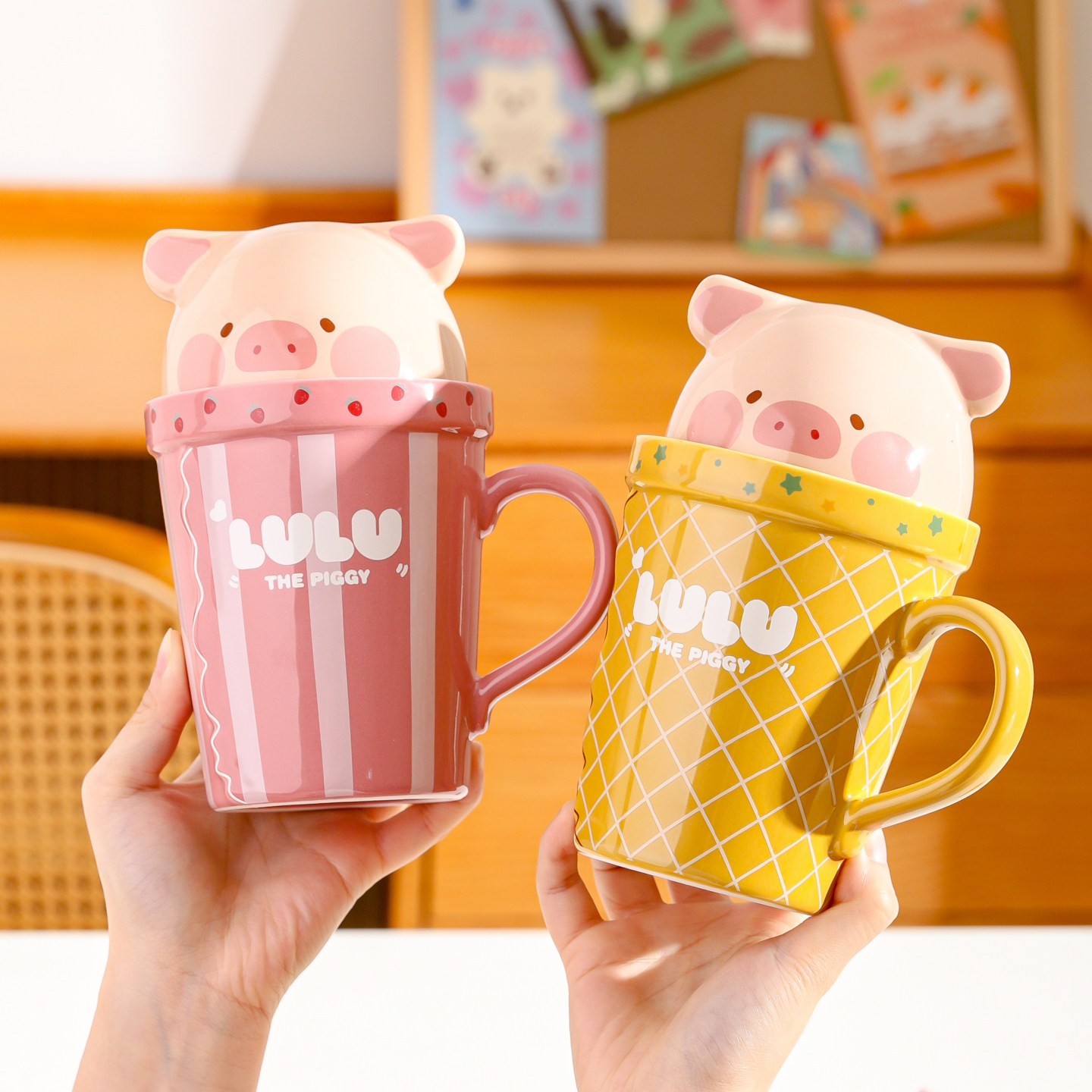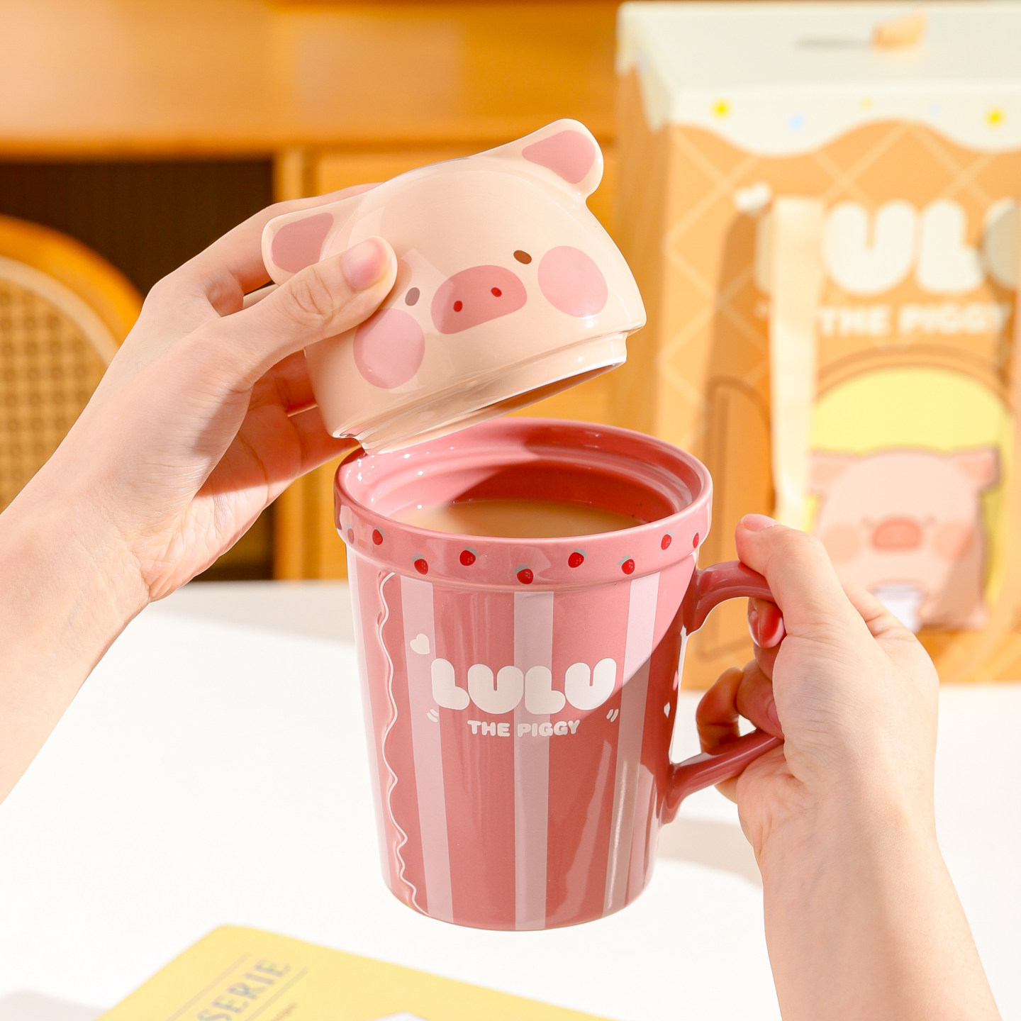 📚 川岛屋&lulu猪联名 马克杯大容量陶瓷杯子带盖办公室水杯生日礼物