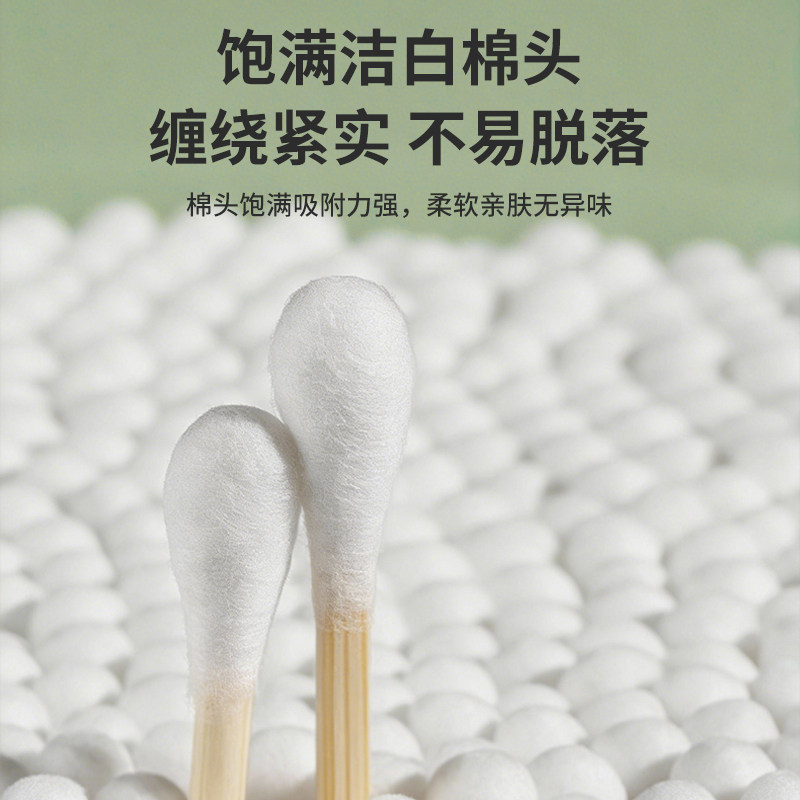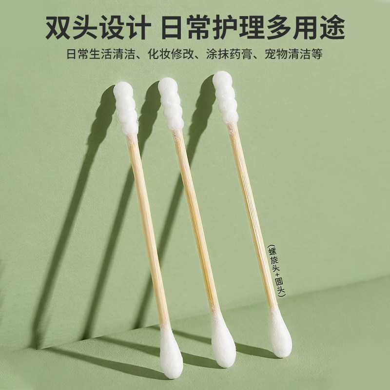 📚 双头竹木棒棉签一次性掏耳朵婴儿棉棒卸妆棉球棒螺旋头耳勺1盒
