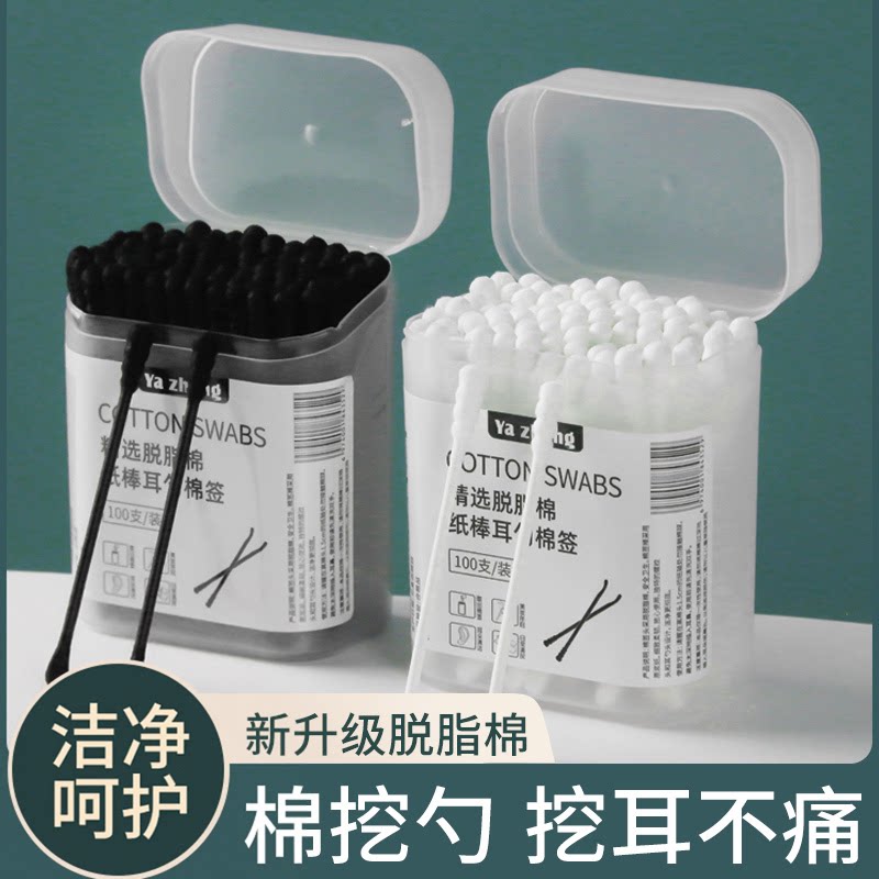 📚 家用棉签掏耳朵适用挖耳勺粘黑色棉球大人一次性螺旋双头棉花签棒