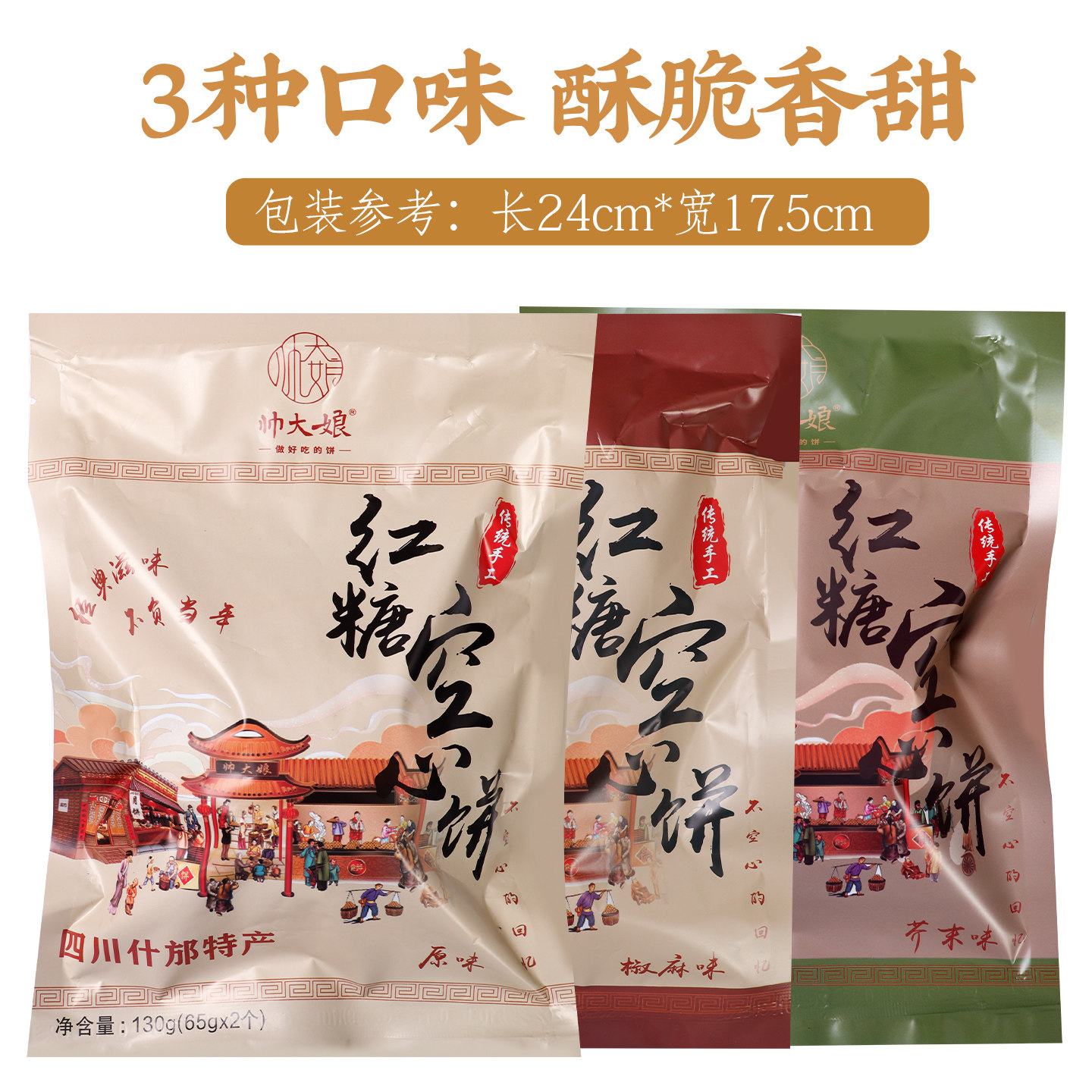 📚 四川成都什邡特产师古黄家帅大娘老式手工空心红糖饼传统芝麻酥饼