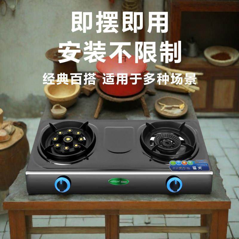 📚 沼气专用灶农村粪池沼气池台式榄能不锈钢黑彩钢鸳鸯九头旋火双灶