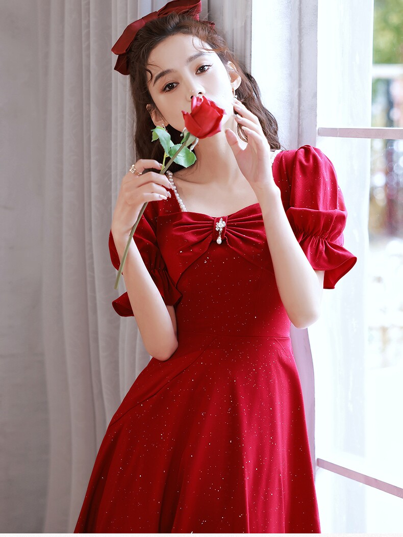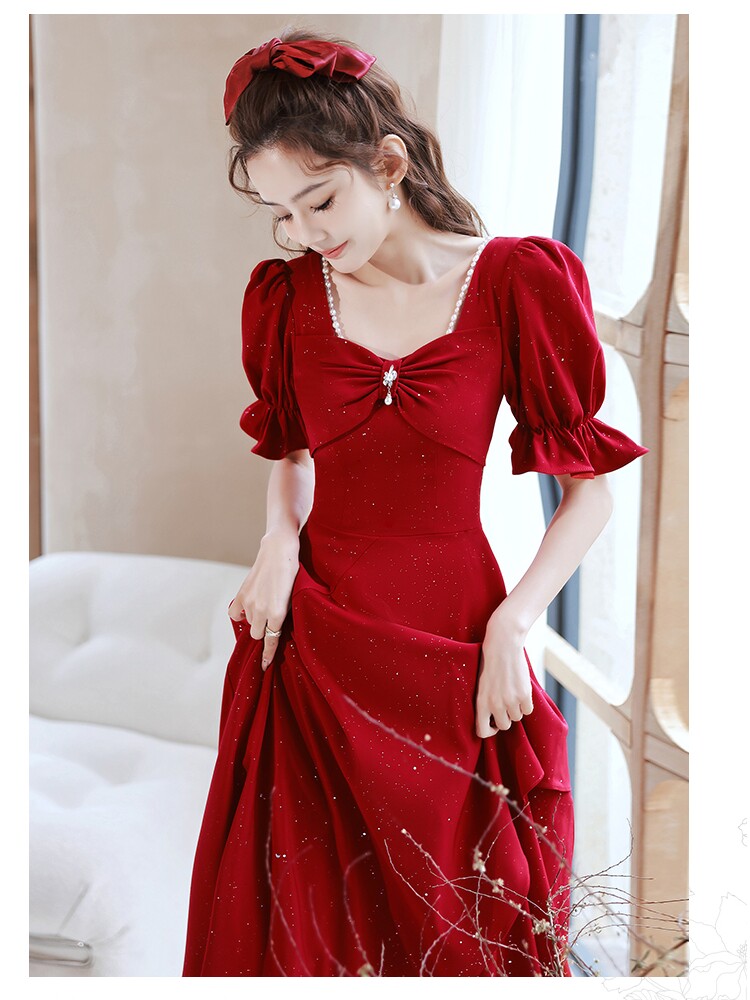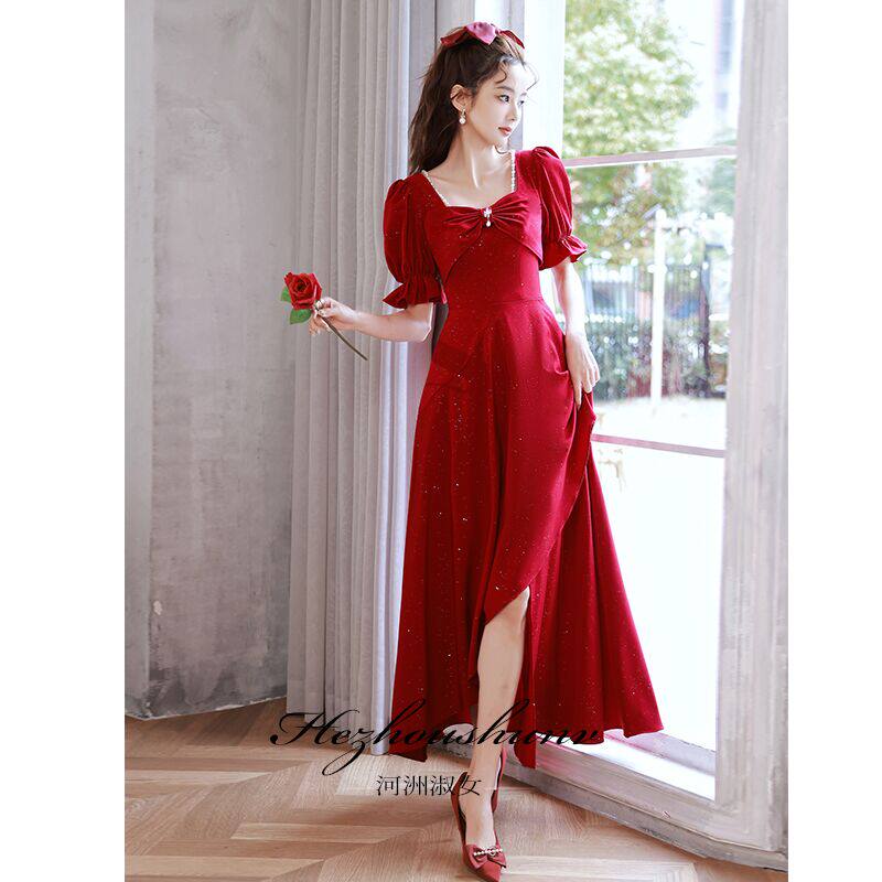 📚 大码敬酒服新娘酒红色平时可穿订婚裙结婚回门服便装高级感胖mm夏